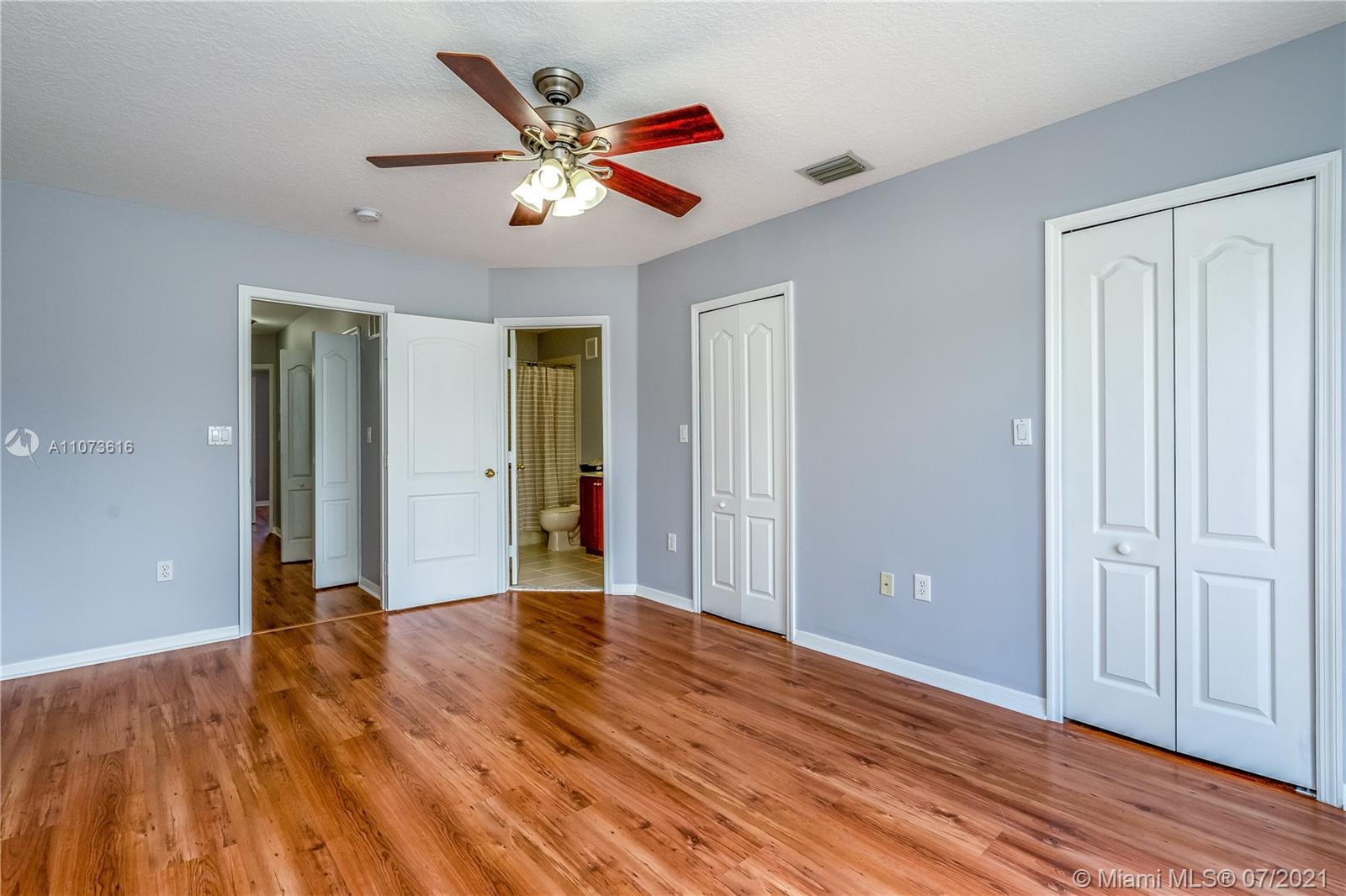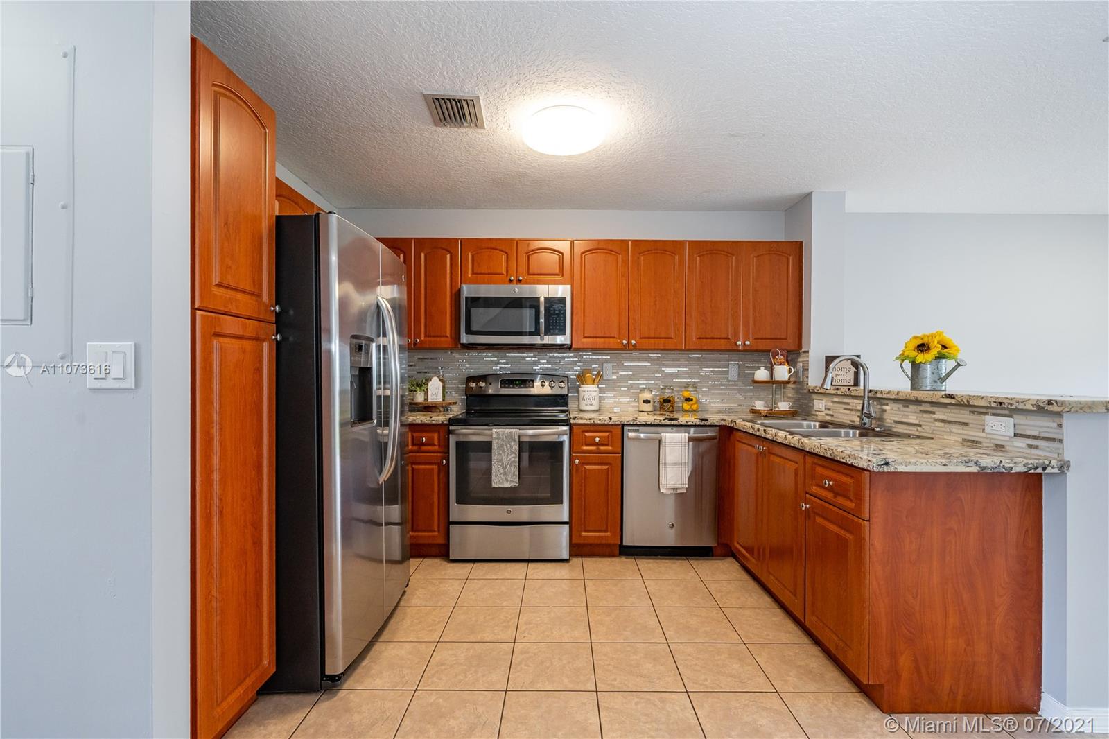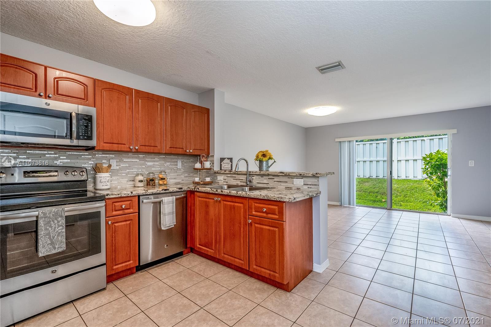 Amazing 2-story townhouse with 3 bedrooms and 3 full bathrooms located in one of Miramar's premier gated communities, Melrose Point at Monarch Lake. This beautiful home features an open kitchen w/ granite countertops and has one bedroom and one full bath located on the 1srt floor for your convenience. Master bedroom features his/her closets & a private balcony. Very well-maintained home with lots of light, ceramic tiles downstairs and laminate floor upstairs. Entire unit is freshly painted. Full-size washer & dryer conveniently located inside the unit. Community offers maintained lush landscaping with plenty of amenities: pool, gym, child play area, tennis court and conference room. Great location close to I-75, Turnpike, school and shopping in the heart of Miramar. This won't last long!!