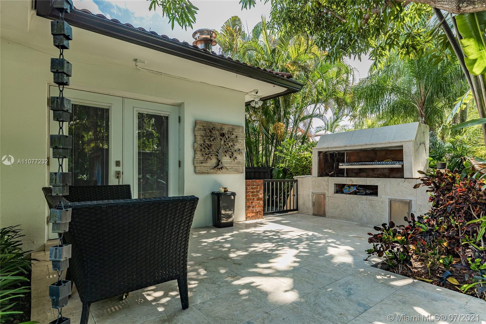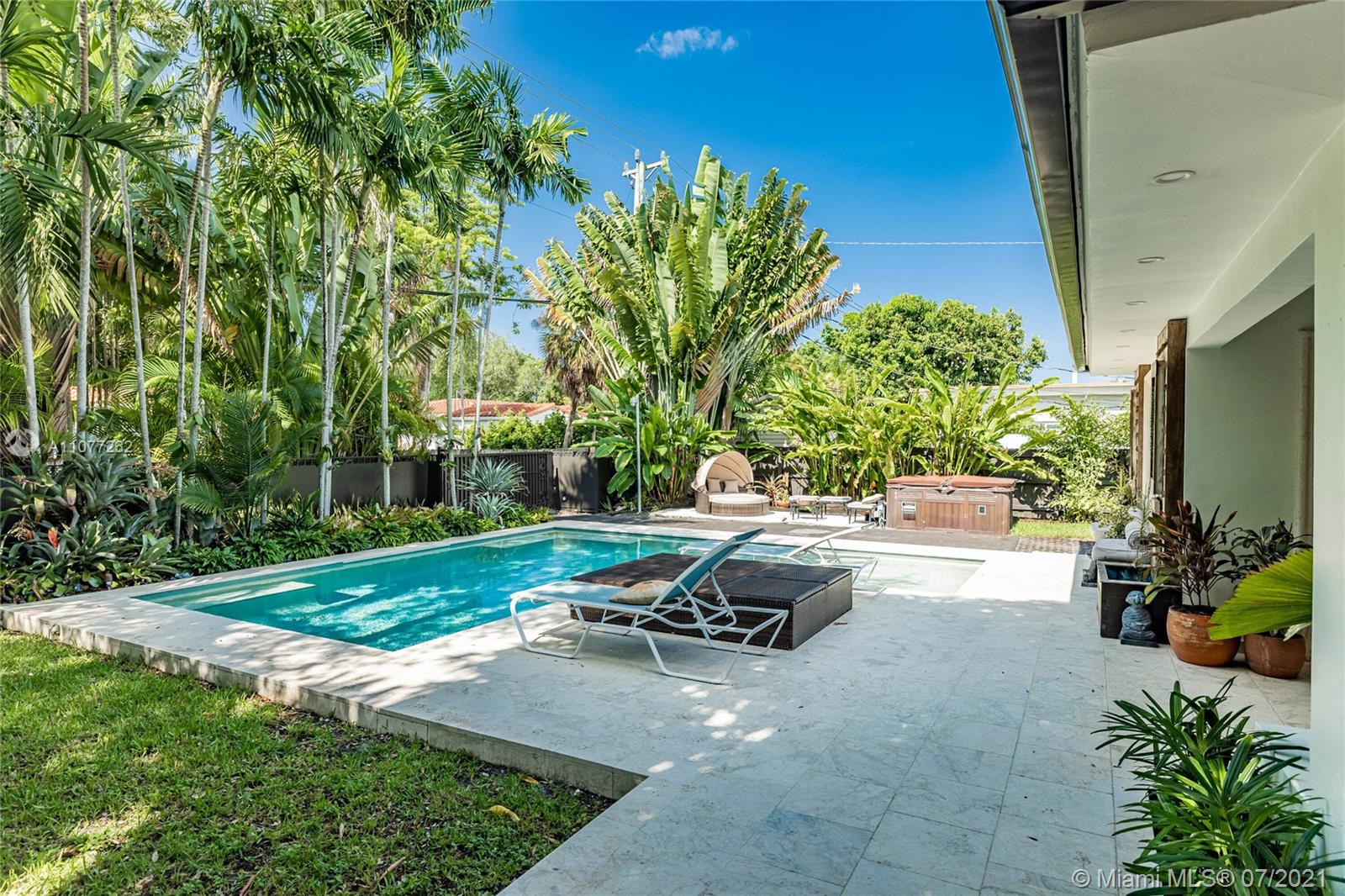 Welcome to Moondance! Awaken your inner zen in this updated spacious modern home—a tranquil retreat and entertainer’s delight, with amazing lush gardens, spectacular waterfall pool, hot tub, veranda, custom marble deck and grill. Inside, enjoy expansive triple-stacked open flow living and dining with huge media room. Home chefs will love the updated eat-in oversized kitchen. Four split bedrooms for extra privacy with triple en-suites, including one with its own fireplace and French doors opening to the pool deck—perfect for slipping out on a marvelous night for a moondance! Great features: modern baths, new AC, impact windows-doors, new gutters, electronic blinds, sprinkler system and outdoor lighting to illuminate the spectacular selection of orchids, bromeliads and other tropical plants.