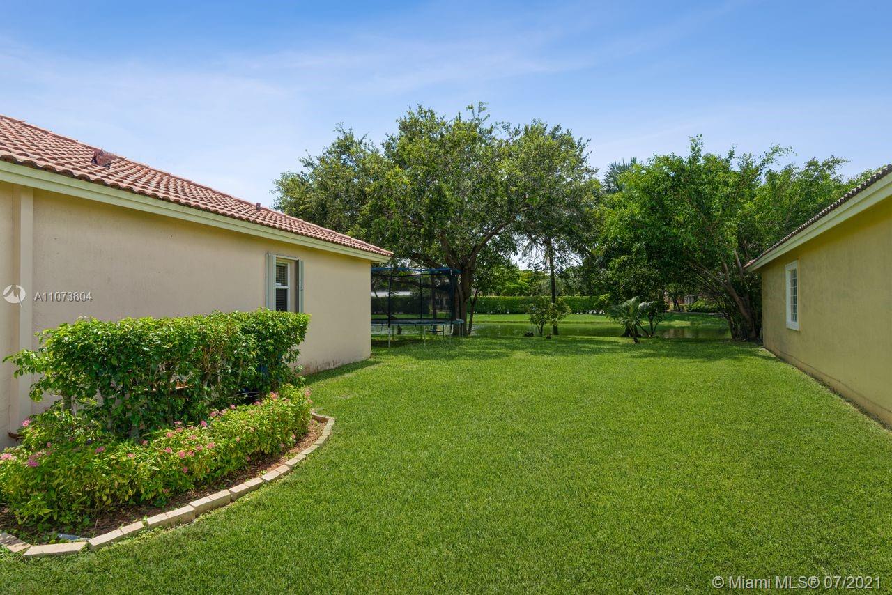 Three Br/2 Ba waterfront home w/one-car garage located in Classics section of gated Villages of Renaissance. Tiled living area. All white kitchen w/granite countertops & all white appliances. Dining area off kitchen accommodates large table. Split bedroom plan. No carpeting in bedrooms. Master bedroom w/walk-in closet. Tastefully updated master ba w/granite countertops & neutrally tiled shower. Secondary bathroom also updated & adjacent to 2nd & 3rd bedrooms. Easy access to laundry facilities just inside garage off kitchen. Full set accordion shutters. Driveway has room for 2 vehicles. Beautifully shaded large pie-shaped lot w/mature fruit trees. Fire up the grill or just relax on covered patio overlooking water. Community w/many amenities including pool, basketball & tennis courts.