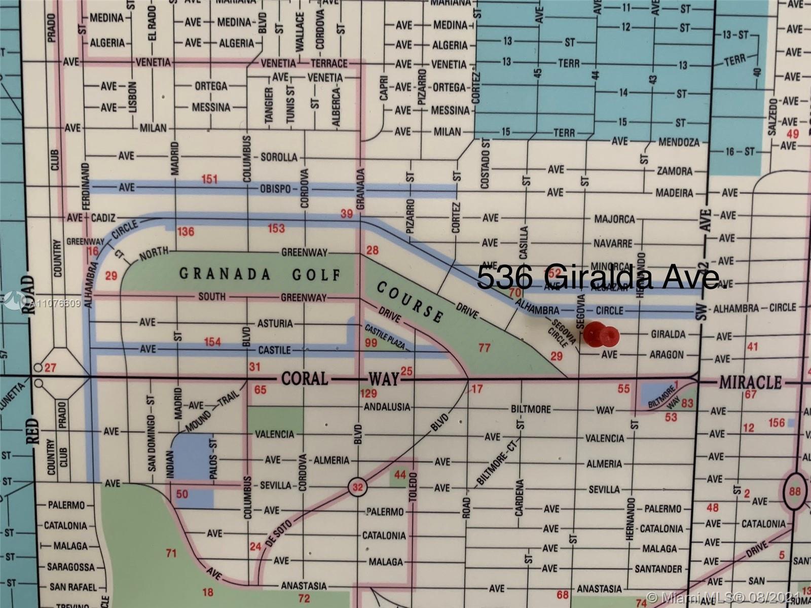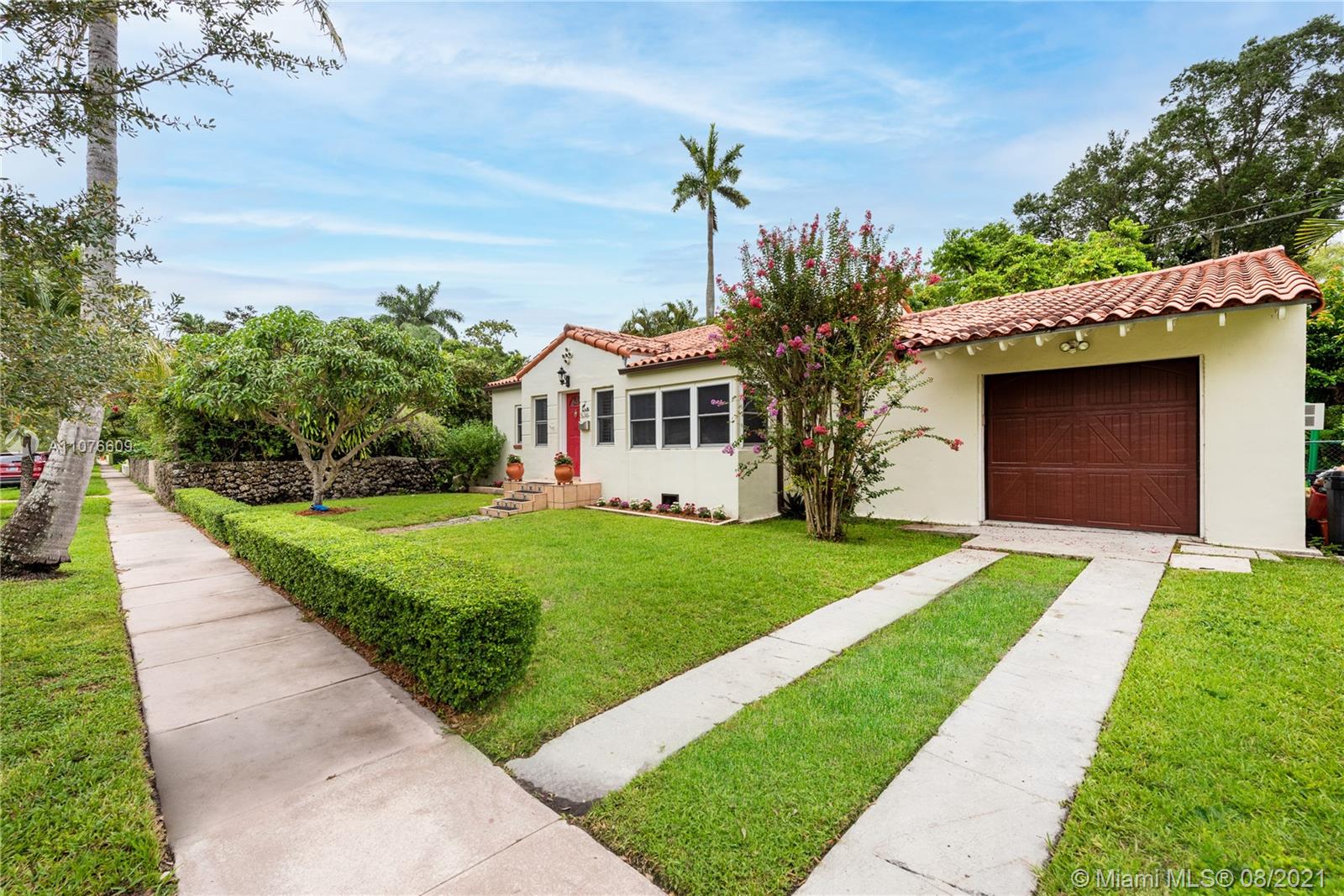 New Listing! Charming 3 bdrm/2 bath home with 1788 Adj.sq.ft on 7200 ft. lot with room for a pool. Live 2 blocks west of LeJeune, north of Coral Way, and around the corner from Granada Golf Course. Perfect for walking to nearby restaurants. Foyer entry, cathedral ceiling living room with fireplace, FamRm with FR doors to fenced back yard.Formal DR. The eat-in kitchen was a former porch now enclosed and has a beamed ceiling. Built-in 1937. High ceilings, wood floors, garage with laundry area. Bathrooms and kitchen were updated in 2012 with many impact windows added at that time. Hardwd floors added/refinished. Central A/C. Inspection report available from Allied. Short closing preferred. In choice Gables Prep School District for K-8 grades which is north of Palermo Avenue. FIRM PRICE.