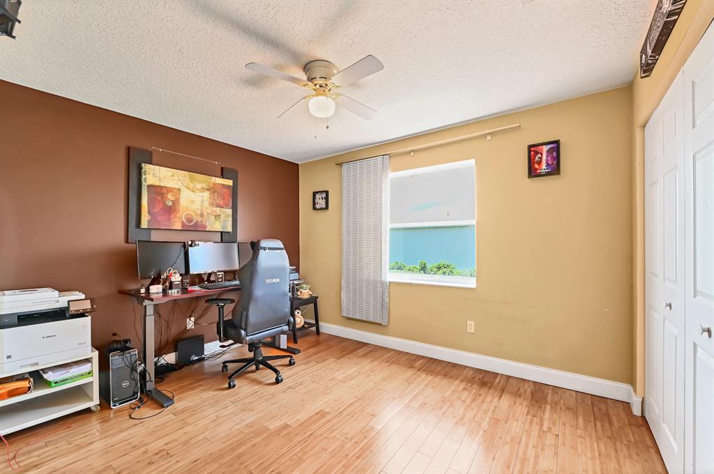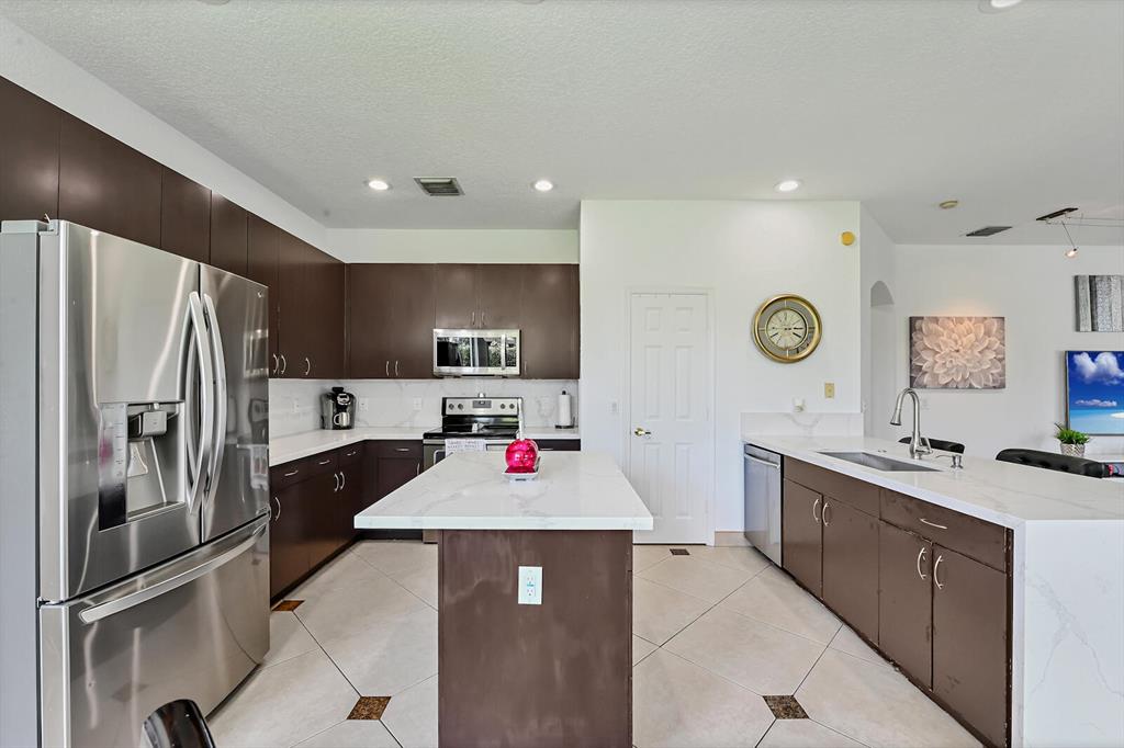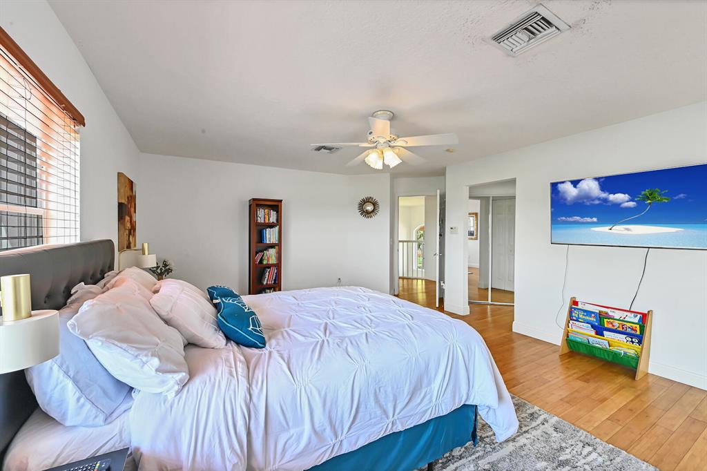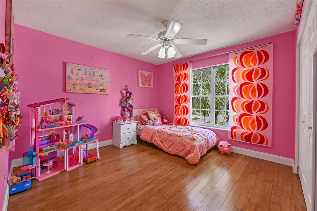 Immaculate Bal Harbor model in prestigious Boca Winds. This 4 bedroom, 2.5 bath home sits on an oversized fenced corner lot and features a screened patio. Fully hedged private back yard with plenty of room for a pool. Newly remodeled quartz kitchen counters and stainless steel appliances with eat-in area. Inviting grand foyer with high ceilings and a great floor plan for a family and entertaining friends. Large master bedroom with European style vanity. Beautiful bamboo wood floors throughout the upstairs and bedrooms. 3 car garage and accordion hurricane shutters. You can walk to highly desired ''A'' rated schools. The roof is from 2019 and the garage has AC. The community has 2 tennis courts, a basketball court and a beautiful pool with a clubhouse. This is a must-see