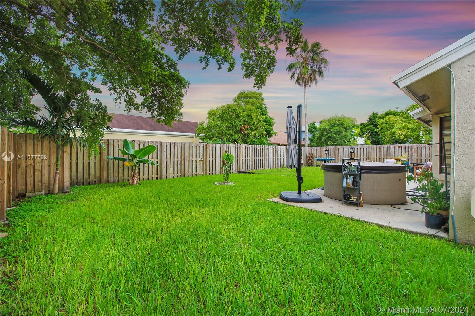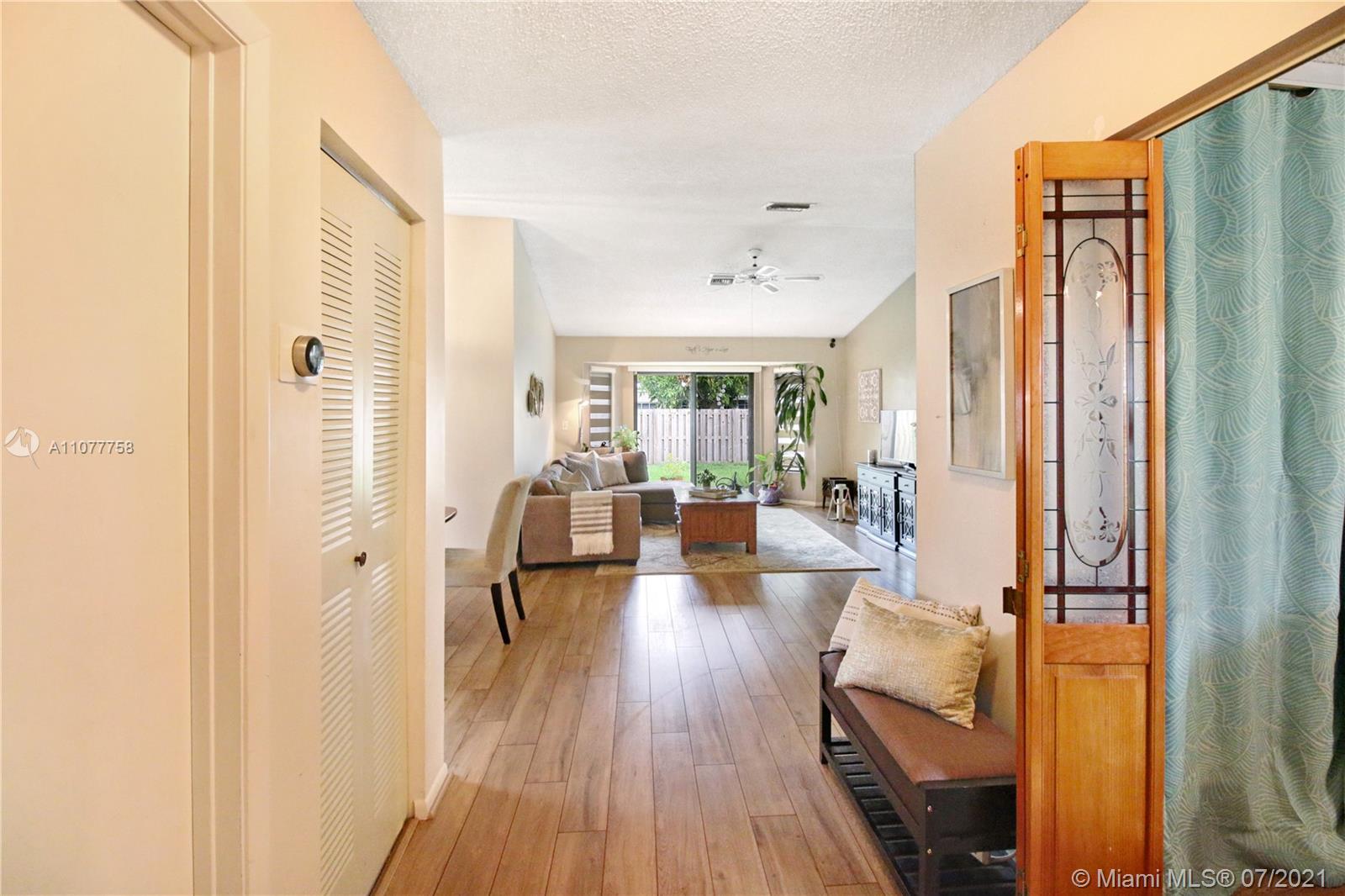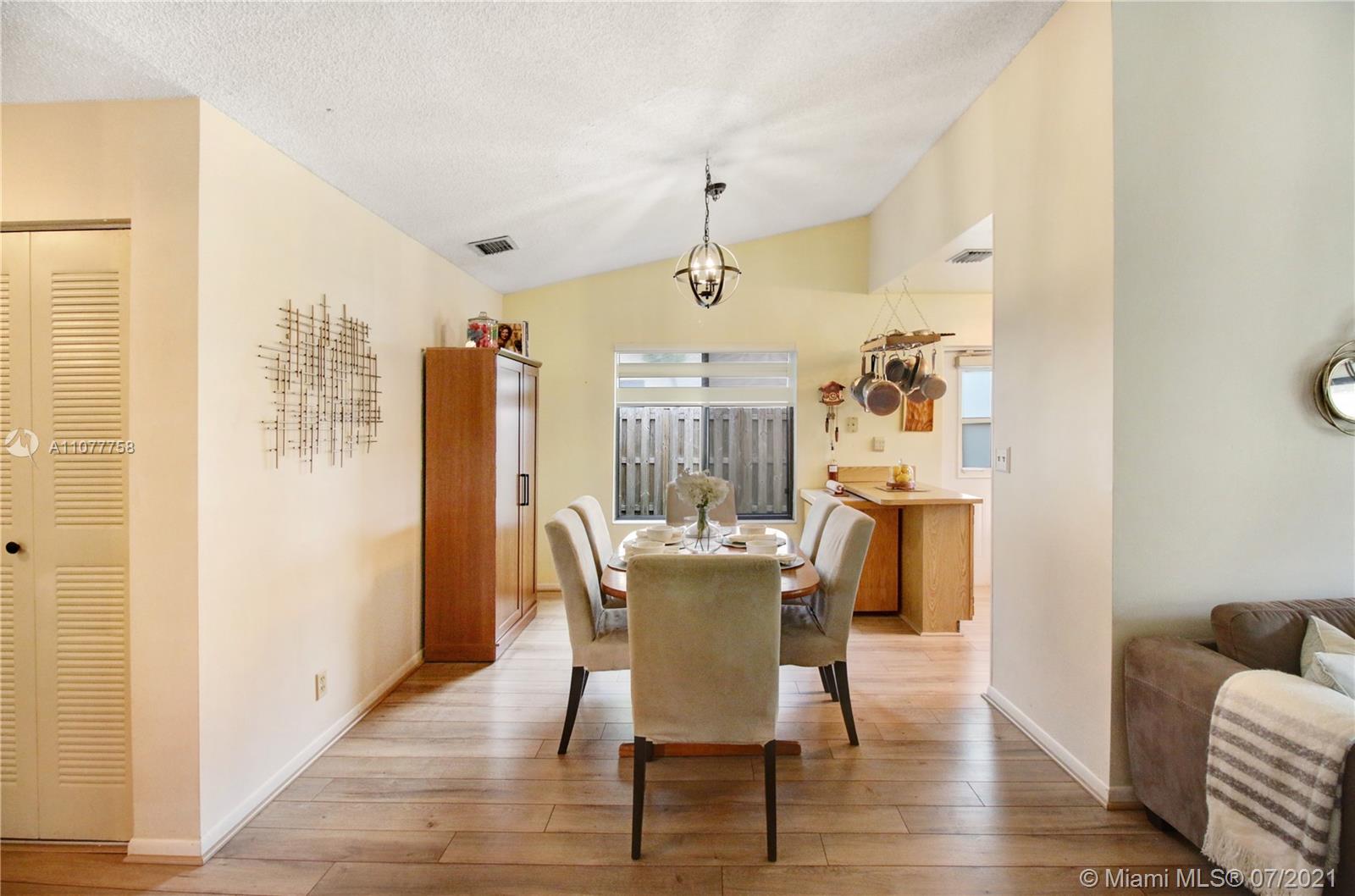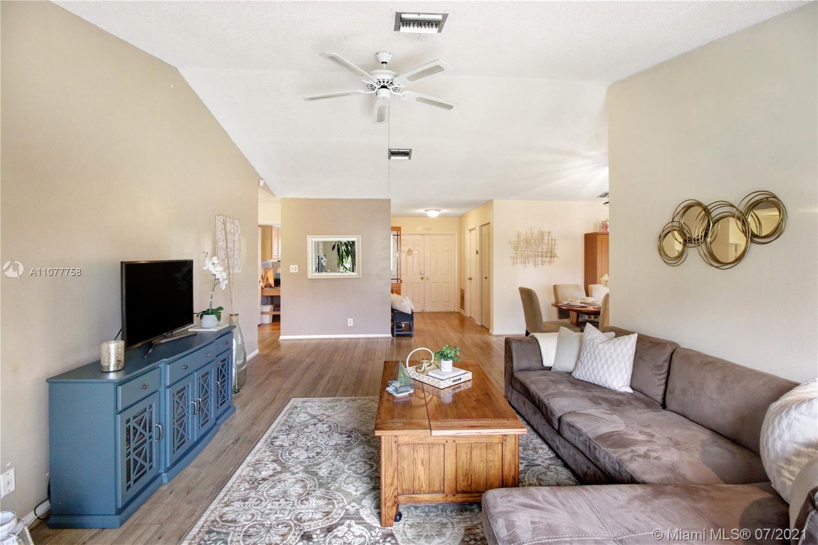 Beautiful three bedroom, two bathroom, single family home with a 2 car garage in perfect west Sunrise location! Home boasts vaulted ceilings in main living space and master bedroom, new laminate flooring throughout, and spacious private fenced backyard with room for a pool! Quiet neighborhood located within walking distance to Welleby Elementary School, and 5 minutes from Sawgrass mall, shopping centers, sporting arenas, and major highways! Low HOA of only $36 a quarter!