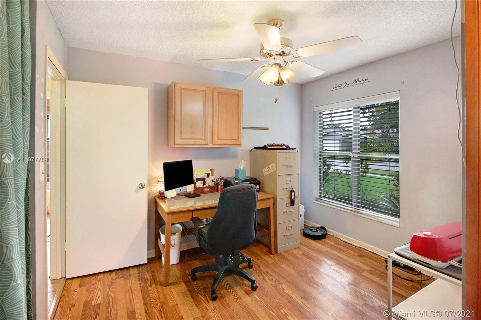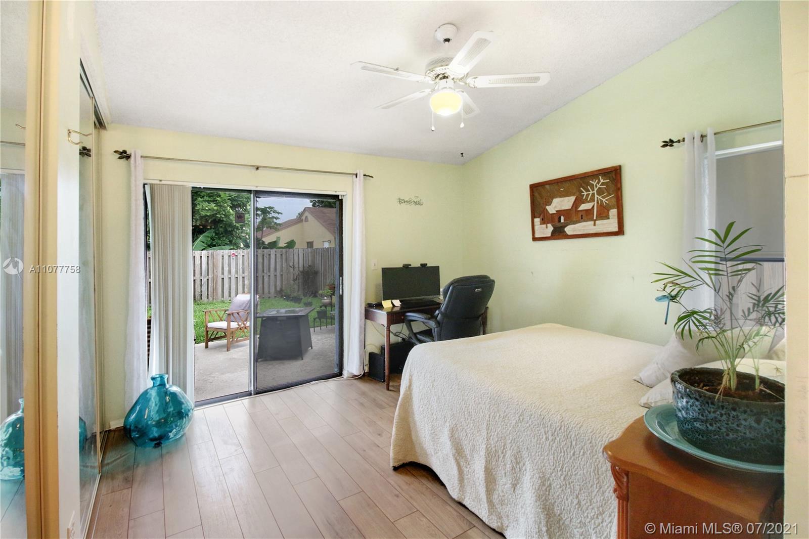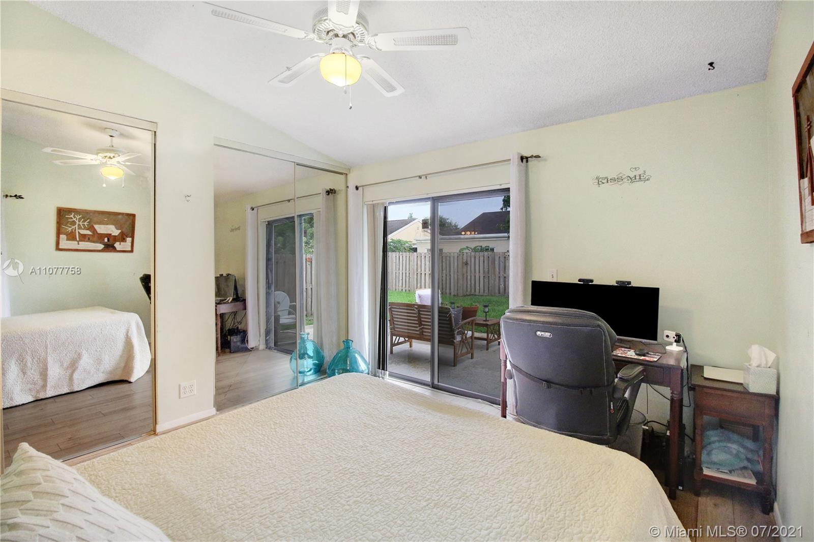 Beautiful three bedroom, two bathroom, single family home with a 2 car garage in perfect west Sunrise location! Home boasts vaulted ceilings in main living space and master bedroom, new laminate flooring throughout, and spacious private fenced backyard with room for a pool! Quiet neighborhood located within walking distance to Welleby Elementary School, and 5 minutes from Sawgrass mall, shopping centers, sporting arenas, and major highways! Low HOA of only $36 a quarter!
