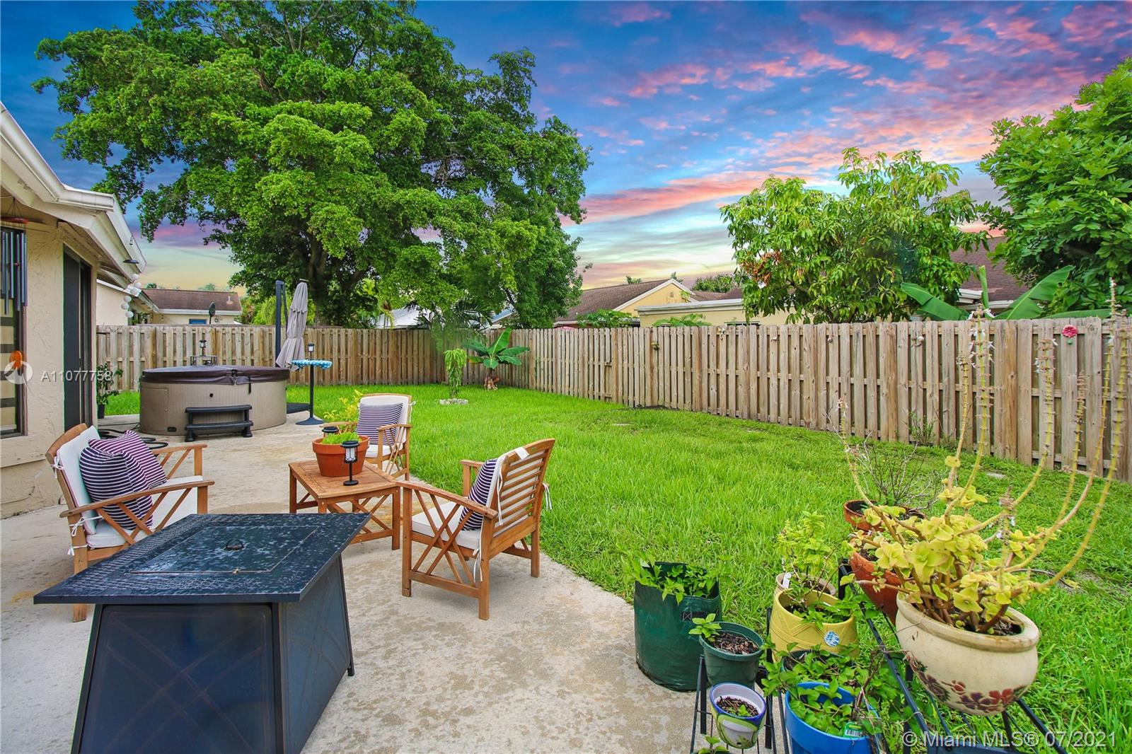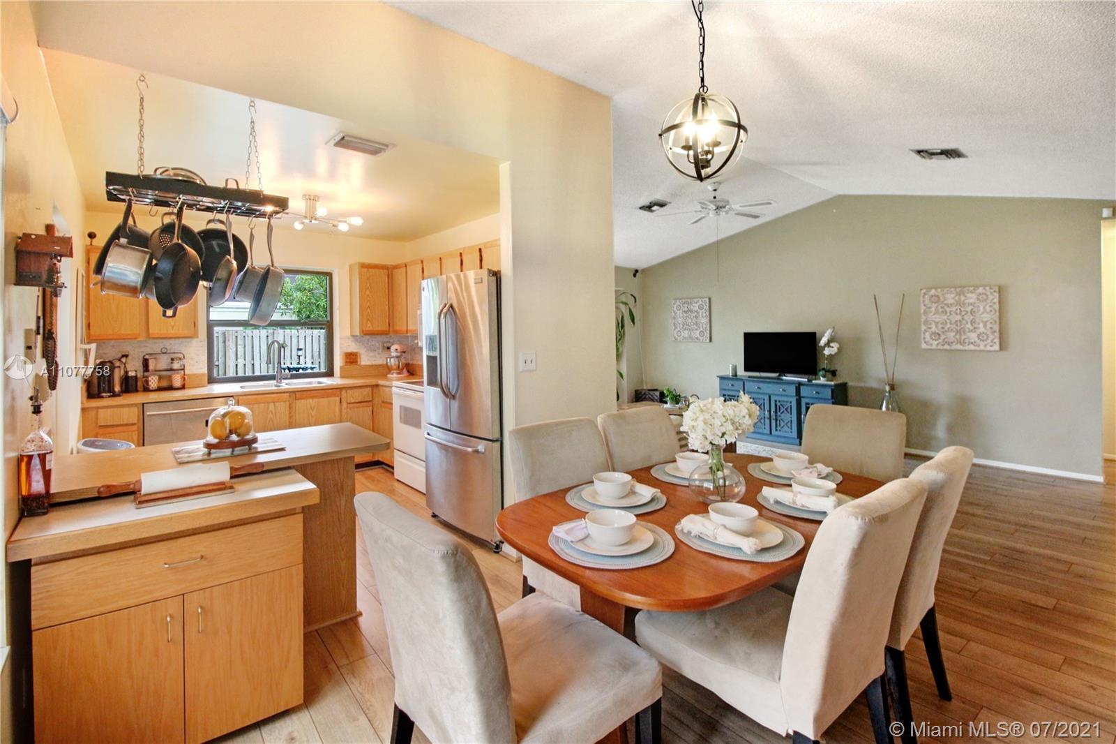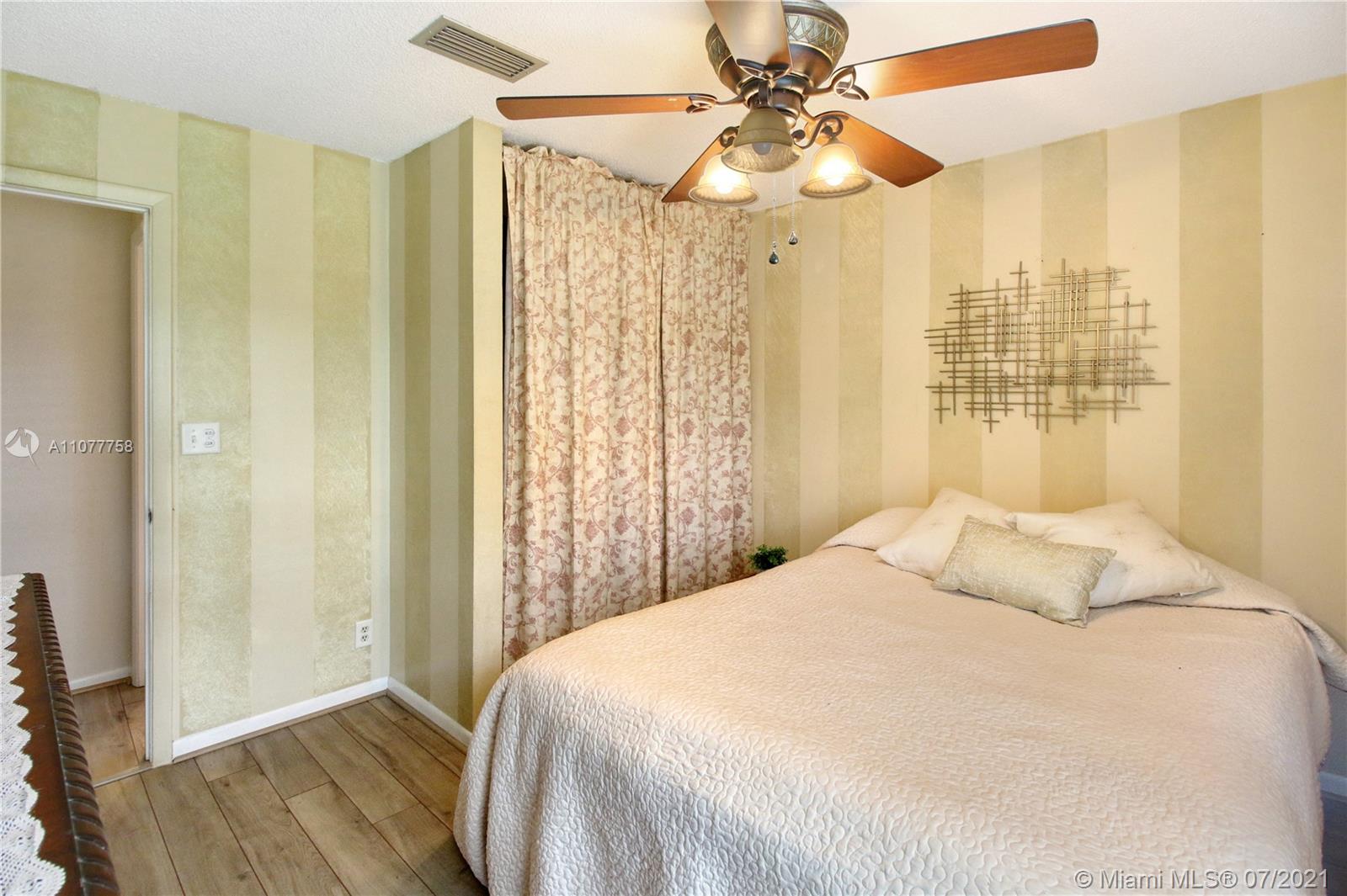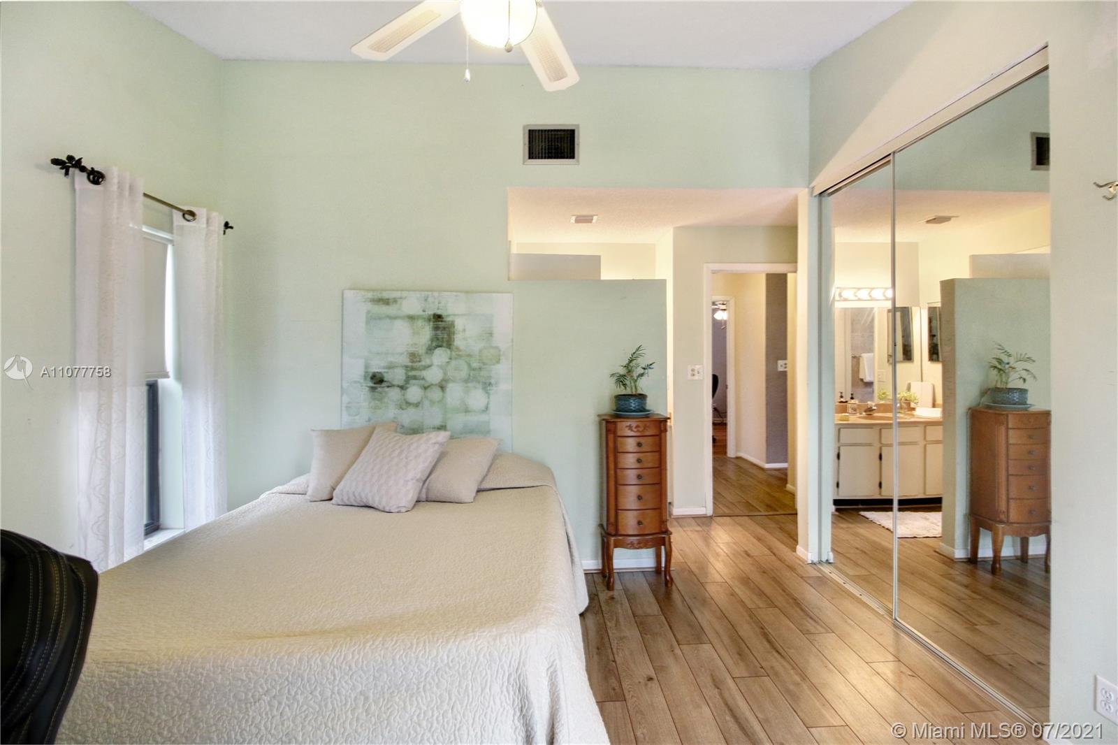 Beautiful three bedroom, two bathroom, single family home with a 2 car garage in perfect west Sunrise location! Home boasts vaulted ceilings in main living space and master bedroom, new laminate flooring throughout, and spacious private fenced backyard with room for a pool! Quiet neighborhood located within walking distance to Welleby Elementary School, and 5 minutes from Sawgrass mall, shopping centers, sporting arenas, and major highways! Low HOA of only $36 a quarter!