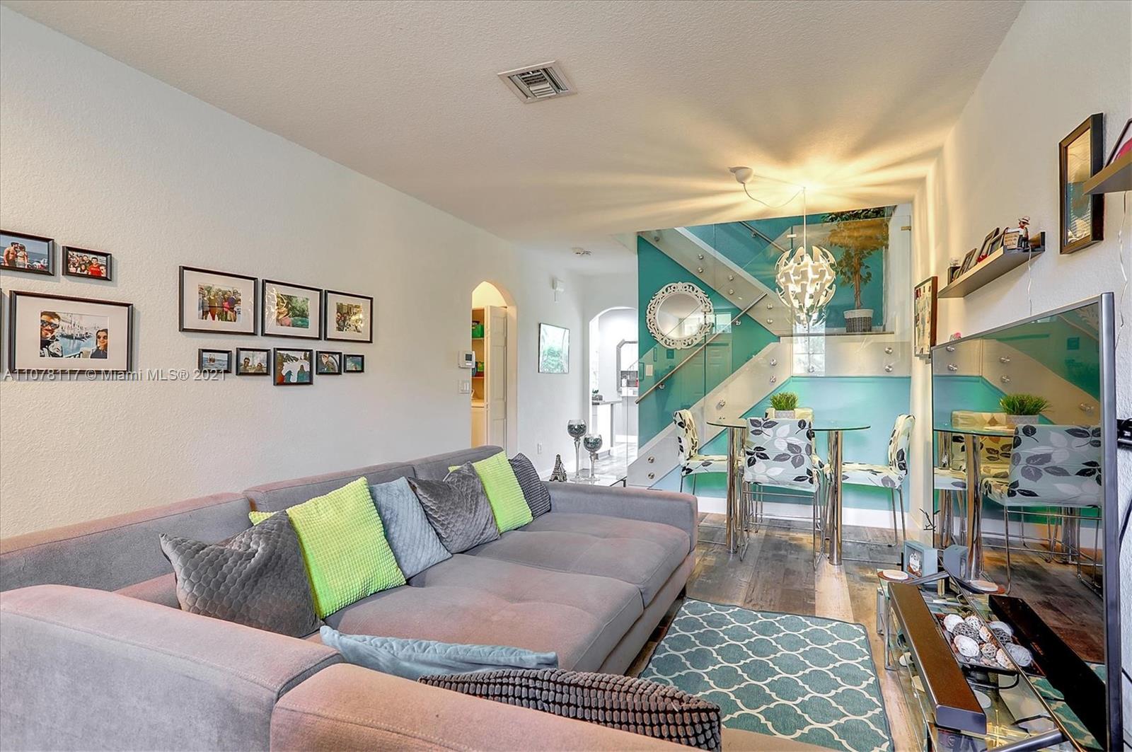Most luxurious remodel in the quiet and super clean gated community of Murano! 3 bed/ 2.5 bath townhome w/ 1 car parking garage & 3 parking spots in front. Smart home operates Alarm, Lights/outlets, Doorbell w/camera, Door lock, and A/C thermostat. All New A/C unit, Appliances, Washer/Dryer, Waterproof vinyl Flooring & LED light features throughout the entire home. Newly remodeled kitchen and baths with Quartz countertops. Beautiful modern stairwell w/ clear tempered glass. Large Master bedroom w/ spacious wrap around Walk-in closet. Ample closet space throughout the home. Situated at the front of the community close to pool, gym, and tennis courts with additional parking for your guests!
