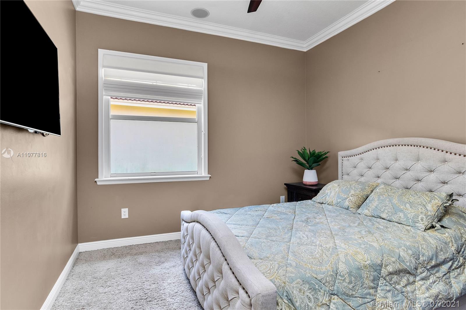 HERE IS THE PERFECT HOME waiting for you! nSingle Story house, gated community, upgraded kitchen espresso cabinets with quartz countertop, Kitchen aid stainless steel appliances, 4 door refrigerator, range hood, microwave, glass cooktop oven, wine cooler, gorgeous accent backsplash, walk-in pantry. Enjoy the spacious living room, dining room, and family room and connect through the covered patio and pool area. 3 car garage dress with Poxy flooring and Cabinets to storage, cameras, accordion shutters, UNIQUE lighting fixtures from Farrey's and ZGallerie all included. Crown molding covering every corner, and a lot more details to appreciate it every day. Large Master bedroom, bathroom with Jacuzzi Tub, 2 walk-in closets, marble floor, and unique details inside the shower. (NO Dishwasher)