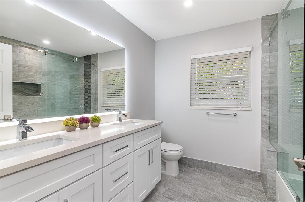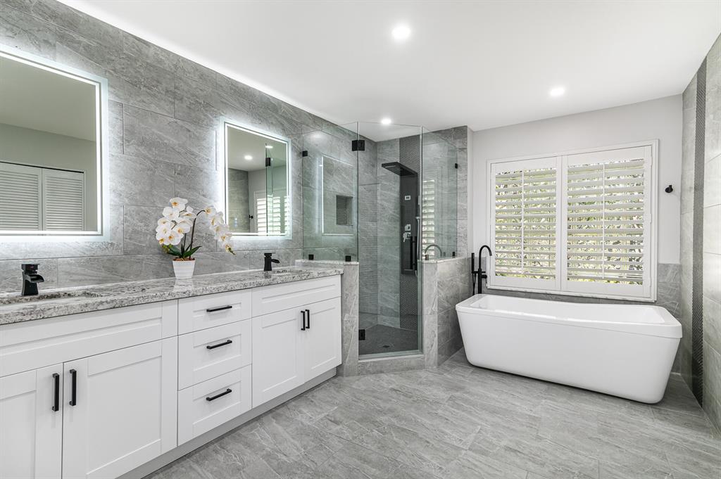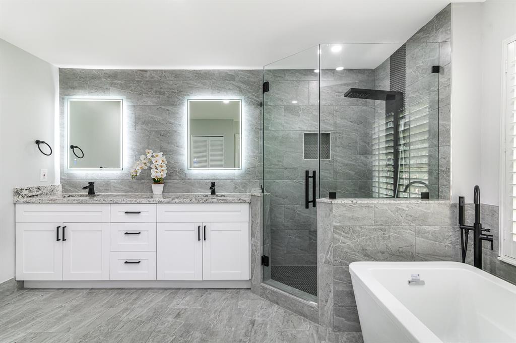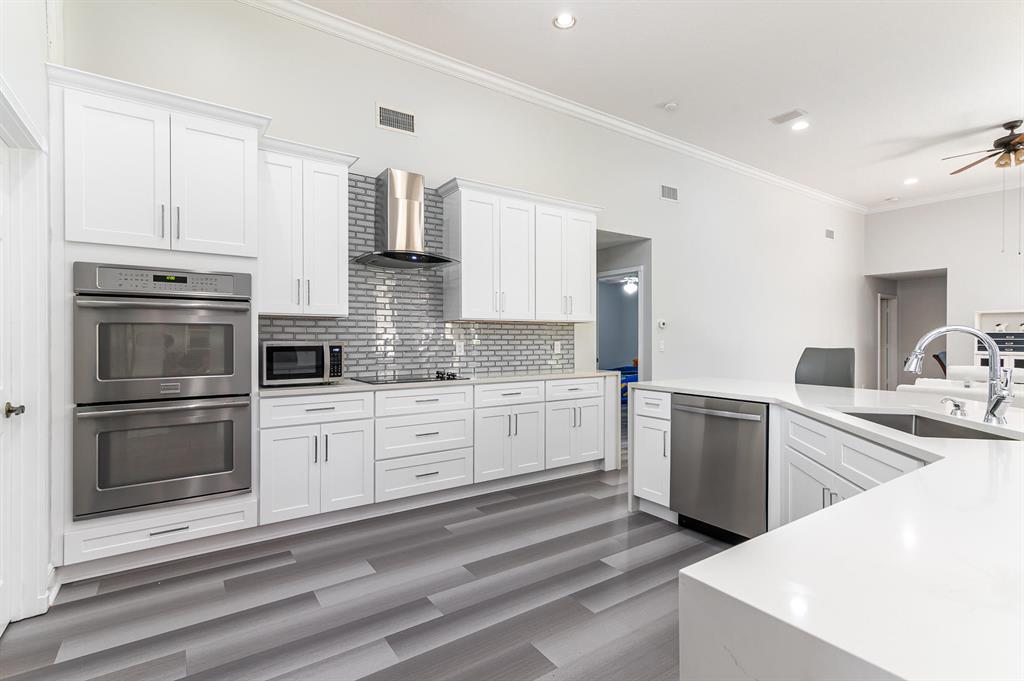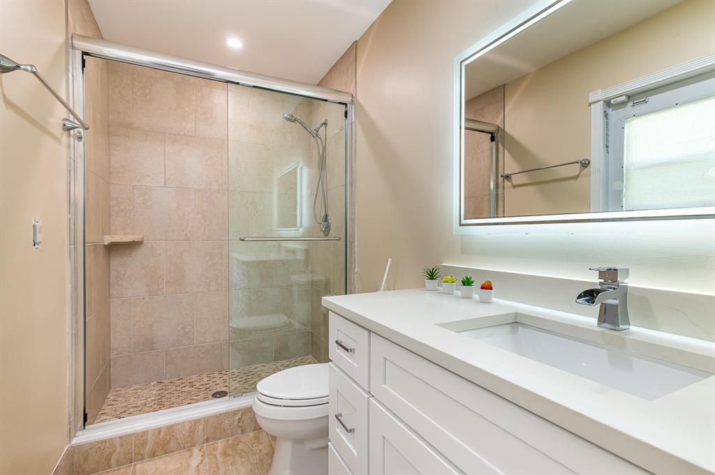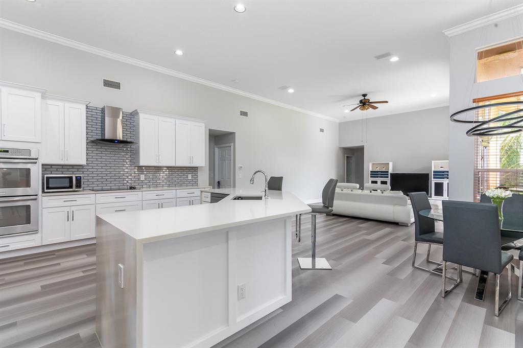 COMPLETELY RENOVATED IN THE HEART OF WEST BOCA! This light, bright, single story home boasts over 2,750 sqft of open concept living space with 5 bedrooms & 3 full baths. Get Lost in the master bedroom with high ceilings, dual closets and a modern en-suite bathroom worthy of HGTV! The FABULOUS kitchen with white shaker cabinets, includes double ovens, ample quartz countertops (w/ waterfall edges), glass tiled backsplash, soft close drawers, and one of the largest center islands (w/ seating) you will see. The family room, kitchen, dining room, and oversized outdoor lanai all blend together seamlessly while still feeling open and cozy. Brand new flooring installed (no carpet). Four additional bedrooms with 2 full bathrooms complete the remainder of the home. Looking for nature?...