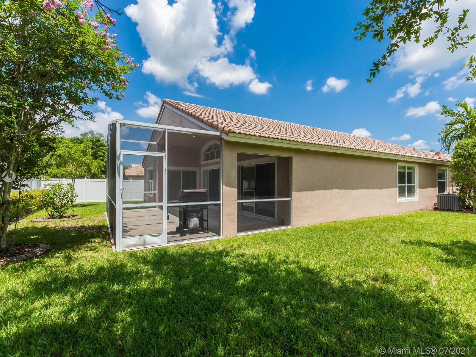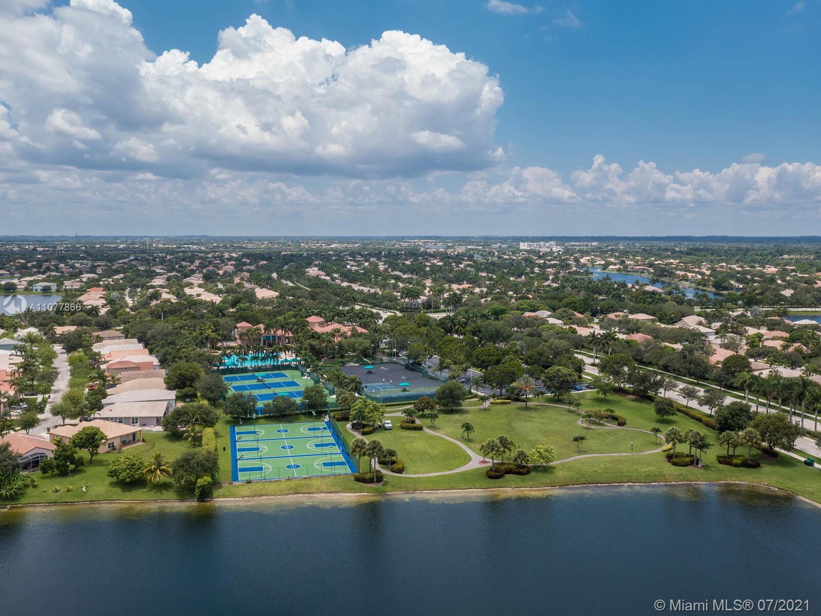 EXTRA SIZE LOT 9000 SF, NEW BLINDS, FRESHLY PAINTED, CIRCULAR DRIVEWAY, 3-2 WITH 2 CAR GARAGE. HIGH CEILINGS, SPECTACULAR CLUB-HOUSE; POOL, GYM, TENNIS COURTS, BASKETBALL, AND MUCH MORE WITH 4 GATE ENTRANCES. Reasonable HOA fee inc basic cable, alarm & internet. Excelent grade A Pembroke Pines schools, Lakeside Elementary. Close to malls, other shopping, restaurants, theaters, library, parks, dining & I-75 for easy commutes in every direction. READY TO MOVE IN! Don't miss this opportunity.