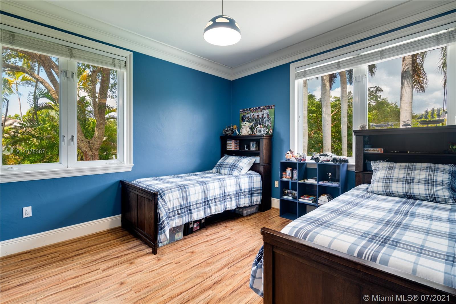 Elegant 2-story home in the Coral Gables community of Cutler Oak Estates with only 15 homes.  Built in 1995 this well-planned 6,765 sqft split floorplan, 7 Bedrooms 7.5 Bathrooms(3 bedrooms downstairs, 4 upstairs) featuring vaulted ceilings eat-in kitchen that opens to spacious family room, master suite w/ sitting area, large formal living & dining rooms, large pool/patio area on lush lot on quiet cul-de-sac. Located within the A-rated Pinecrest school district and close to many of Miami best private schools