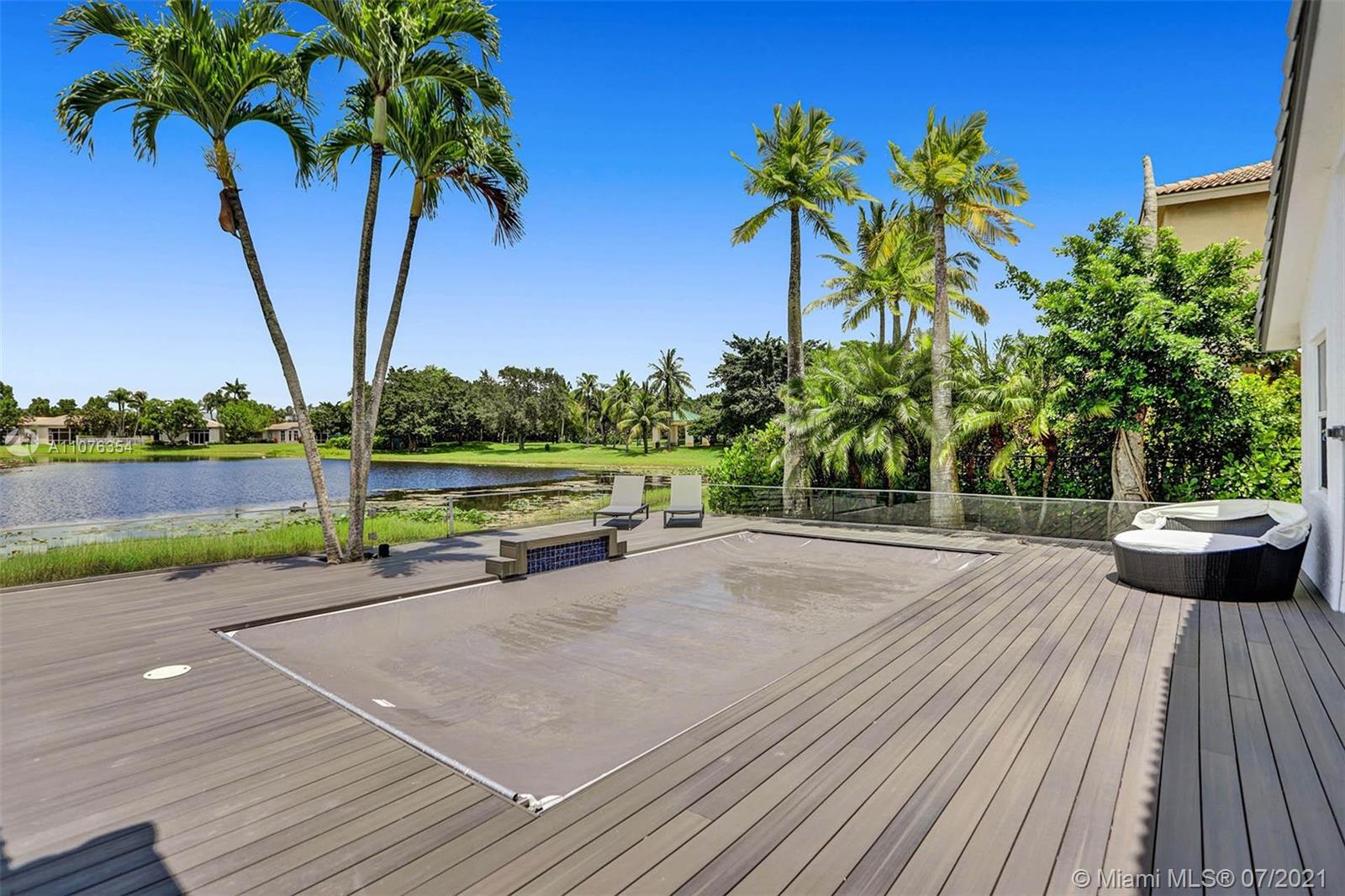 This stunning one story waterfront home in the desirable gated community Weston Hills, is waiting for your family. Amazing lake and pool view from almost all rooms. The house was completely remodeled in 2018. Amazing open concept kitchen features a huge custom made white quartz double counter top, state of the art appliances and modern cabinets. Waterproof flooring in the entire house. Pool deck made with engineered wood and resort style glass perimeter fence. Hurricane impact windows and doors, electric pool cover protection recently installed, new pool heater, security cameras. 3 car garage. This dream house is located just steps from the community's playground. Lightening fixtures in the dinning room& master bedroom are excluded. We kindly require the use of face mask.