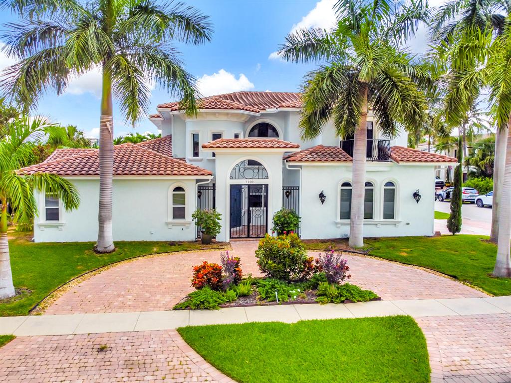 Welcome to 7100 NE 7th Ave, a stunning, custom-built Spanish style property located in the upscale community of Boca Harbor, surrounded by multi-million waterfront homes. This property has been meticulously maintained and boasts 3,944 living sq ft, 6 bedrooms, 5 bathrooms, a 3 car garage, high ceilings, gorgeous marble and hardwood flooring, white quartz kitchen countertops, hurricane impact windows, and a dramatic entryway with a one of a kind alabaster chandelier. The tropical outdoor area is an entertainer's dream with lush landscaping, a screened gazebo, and a fabulous saltwater private pool. The master bedroom has pool views, a huge closet, and an oversized en-suite bathroom with a jacuzzi bathtub.