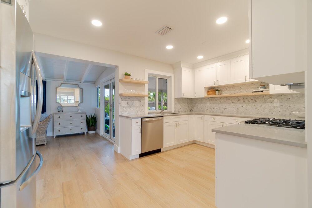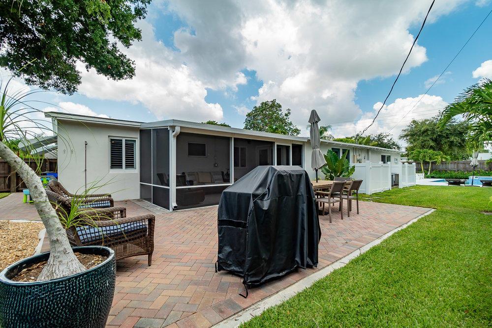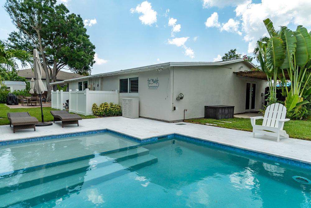 Location, Location, Location. Newly RENOVATED 3 bedroom, 2 bath POOL HOME east of Olive Avenue and 2 blocks from Flagler. Over $175,000 in upgrades in the last 3 years including NEW wood look TILE FLOORS, interior/exterior paint, electrical panel, SCREENED PATIO, hurricane impact windows, POOL AND SPA, Bathrooms AND Kitchen.This home has it all with a FULL KITCHEN RENOVATION that includes new cabinets, QUARTZ counters, tile backsplash, STAINLESS STEEL APPLIANCES, including a gas stove and pass through window to the screened patio. The 20X15 master suite is incredible with his/her walk in closets, FRENCH doors leading to a covered patio and a master bath with double vanities, stand alone tub, large shower with glass surround, water closet and huge storage closet.