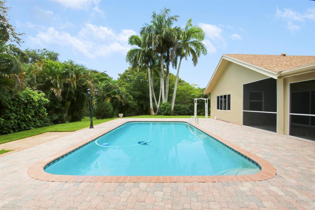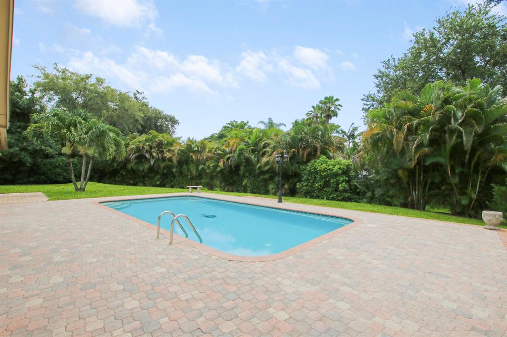Beautiful well maintained pool home in the highly sought after community of Rock Creek. Situated on a spacious fully fenced 1/3 acre cul-de-sac lot. The home also backs up to a park-like greenbelt area that is surrounded by lush tropical landscaping (added privacy). Great home for entertaining! Huge outdoor space with cover screened patio overlooking the pool. In-ground pool with full paver decking that surrounds pool and patio areas. Main Living area has neutral 16'' ceramic tile, vaulted ceilings, high-hat lighting, and a natural brick fireplace! Great views of pool and back yard from all rooms! Spacious Kitchen area with granite countertops and French doors. Roof is only 3 years old! Great location with in the community near parks and Cooper City pool and tennis center! Low Hoa Fee