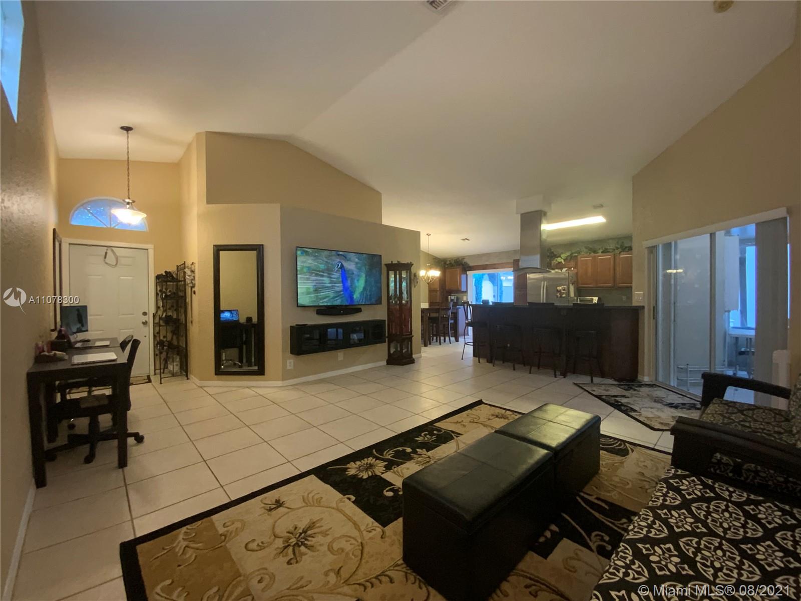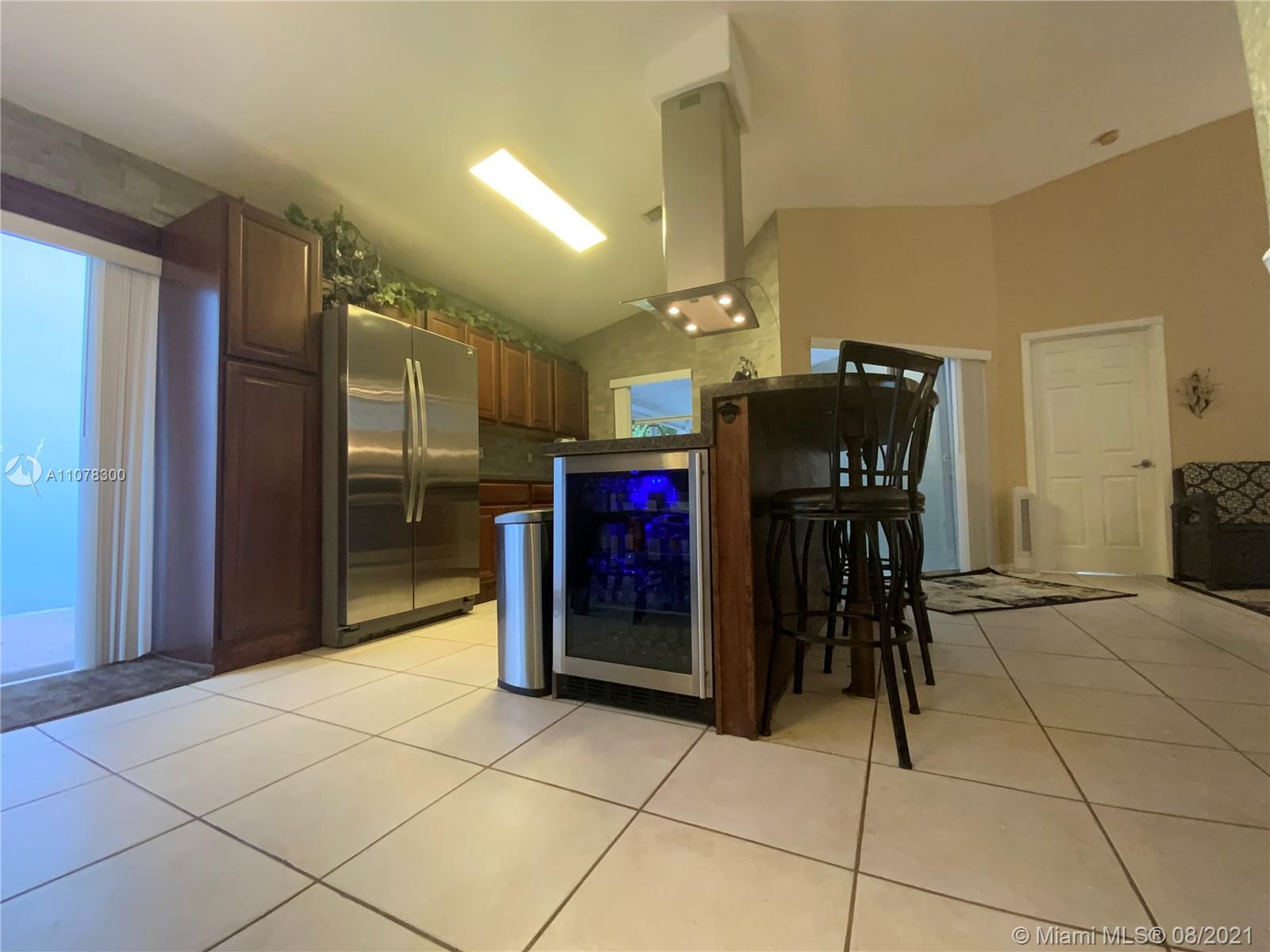 Move in Ready. Keys at closing! 3/2 open, and split floor plan with vaulted ceilings. Newly remodeled Kitchen, Dining Room and Bathrooms remodeled 2017. Fresh paint throughout. Exterior painted in 2019. Newer appliances purchased in 2018. Front load washer purchased 2021, still under warranty. Central air system installed 2017. Ample pantry storage, mini fridge / wine cooler built into kitchen counter. Vessel sink in master bathroom. Gated, private, secure backyard. Plenty of room for entertaining: Screened Florida room. 700 sqft wrap-around backyard patio under lighted pergolas. Butterfly garden surrounding swinging bench. Raised organic garden bed. Solar heated outdoor shower. Excellent shopping, Pembroke lakes mall, and CB Smith Park all within minutes. And more!