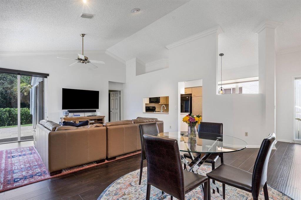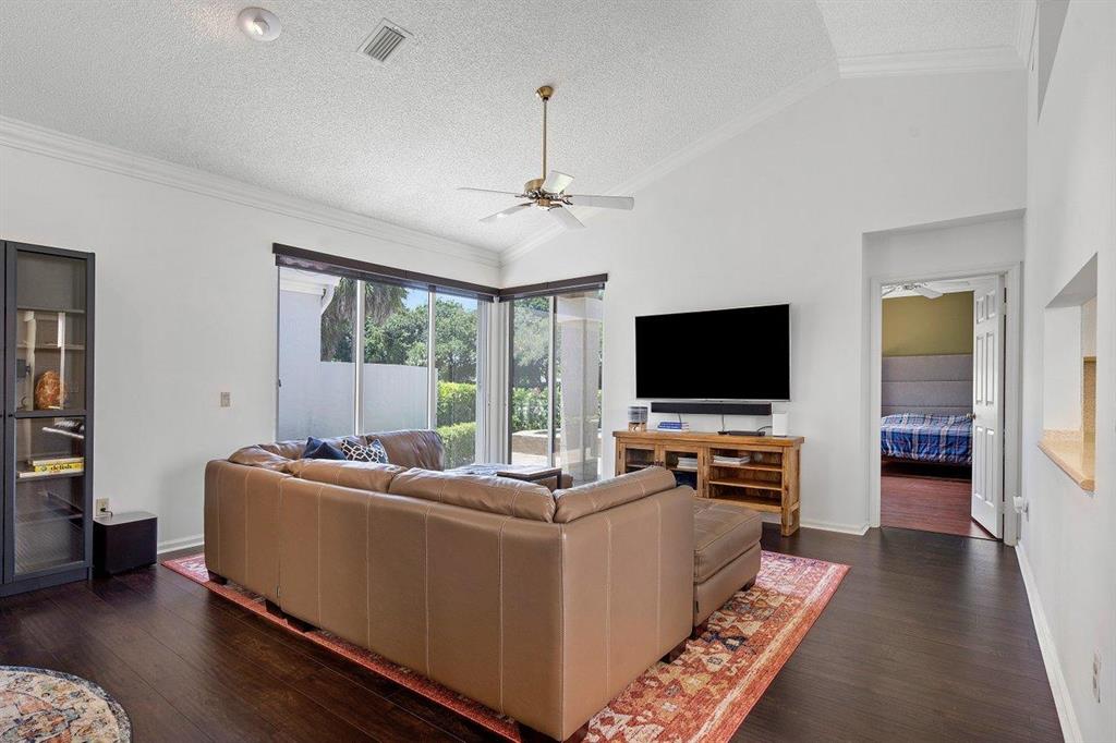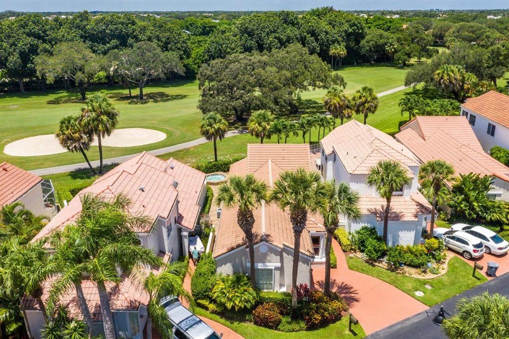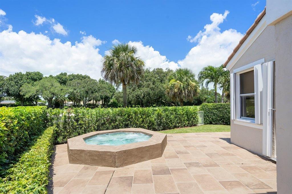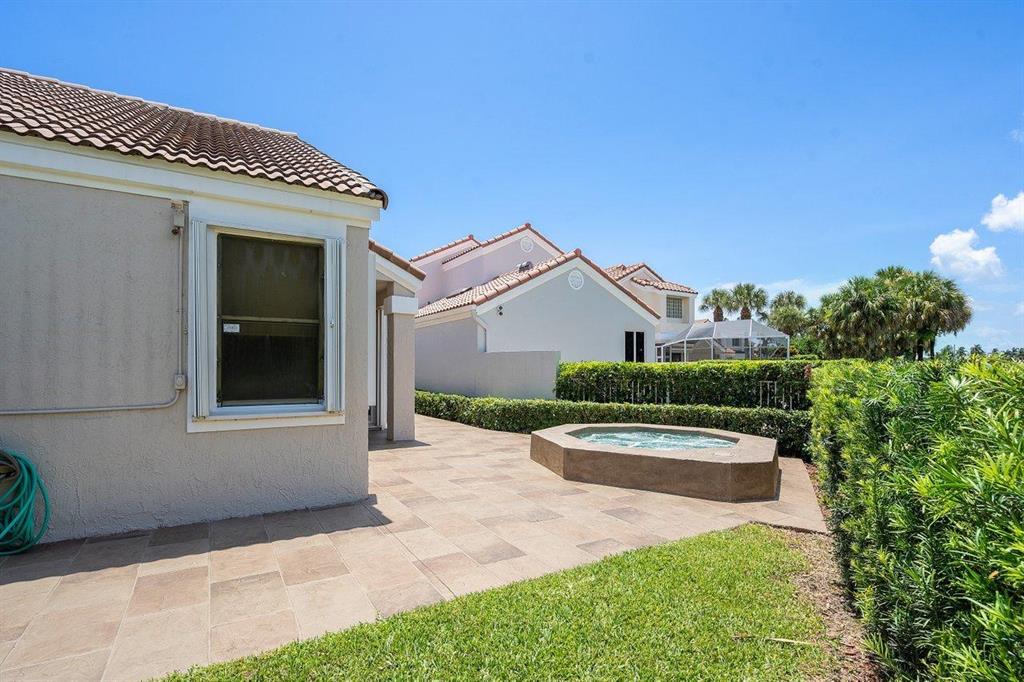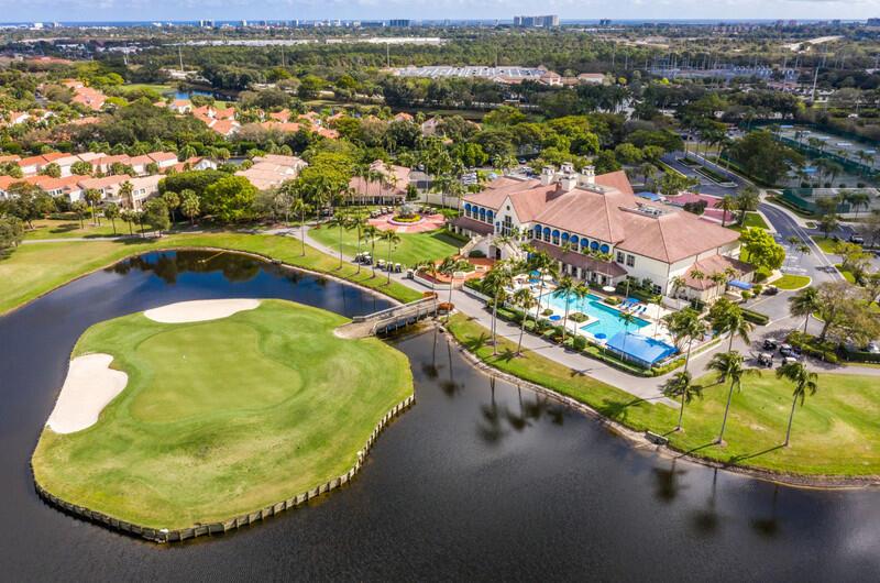 Amazing opportunity to enjoy living along the 18th fairway in the desirable Tiffany Trace subdivision of Boca Country Club w/ no club membership fees! This 2/2 charmer (with potential to enclose in a 3rd bedroom/den/office) is ready for move in and features a spacious fenced patio w/ spa hot tub and golf course view (room for a pool!), single story no stairs, access to the patio from living area and primary bedroom, walk-in closet with custom shelving, attached garage, volume ceilings throughout, eat-in kitchen, peace of mind w/ accordion storm shutters, inside laundry w/ newer washer and dryer 2020, gated and 24 hour manned entry, and all ideally located in Boca's best kept secret just minutes from the fantastic dining, shopping, beaches, and schools of both Boca Raton and Delray Beach!