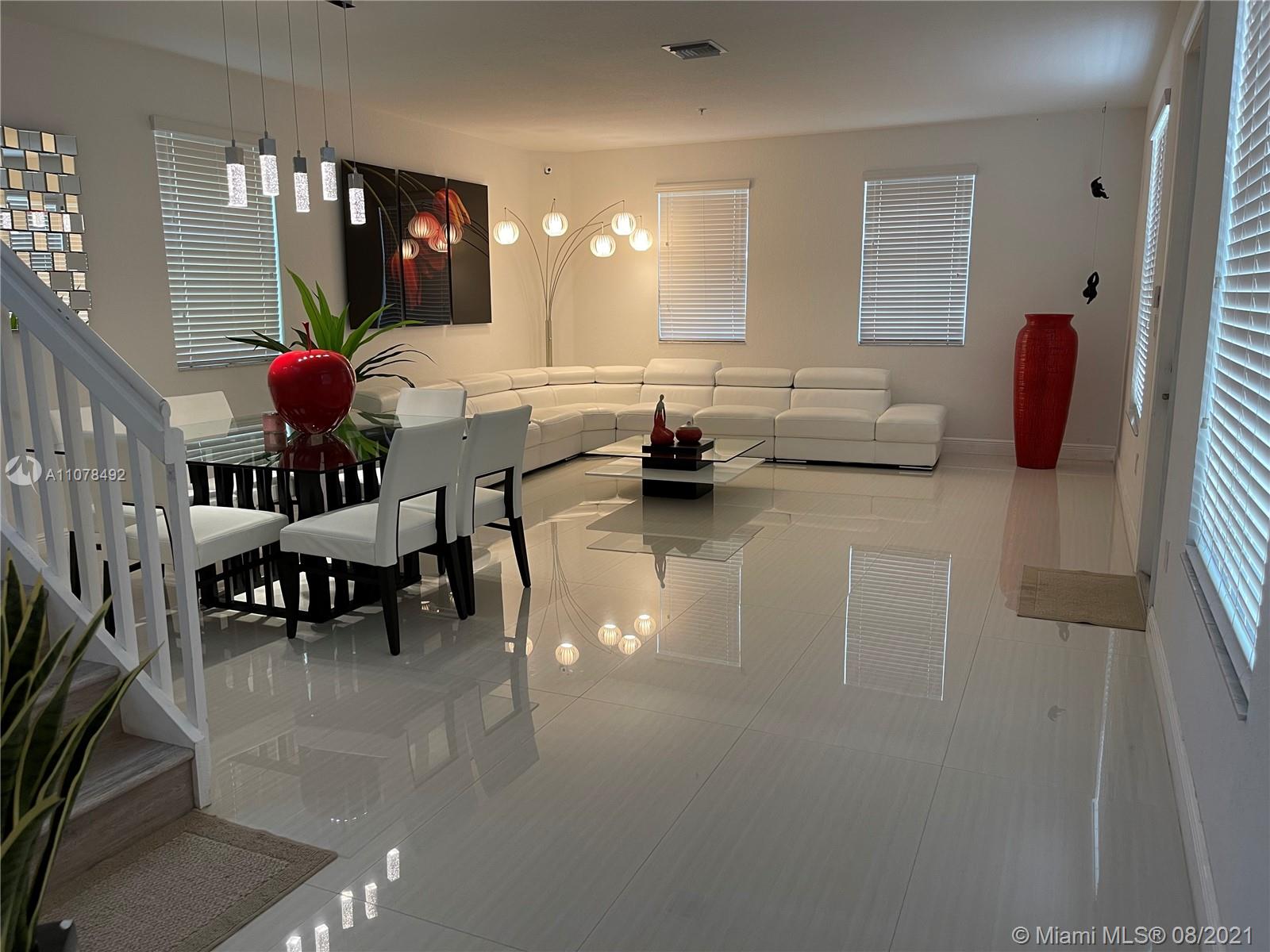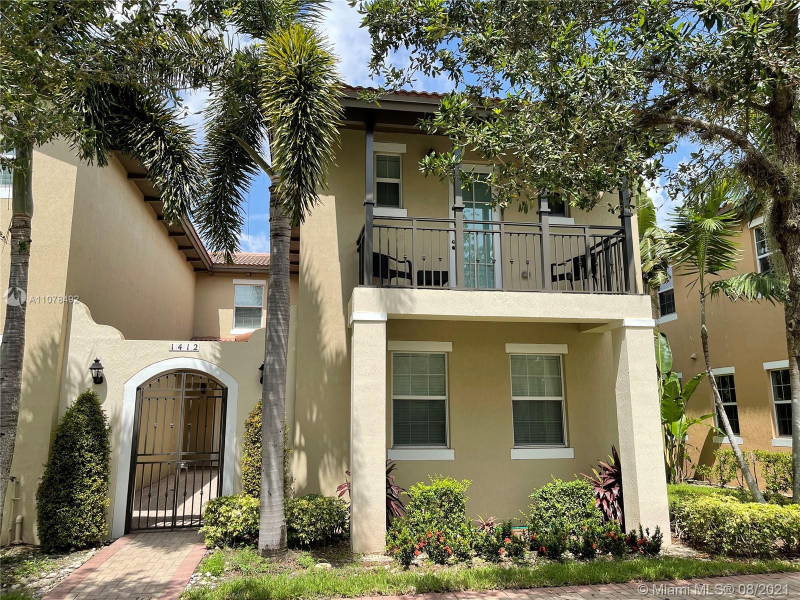 Excellent townhouse located in the gated Cobblestone community in Pembroke Pines and features 100% new renovations completed in March 2021. The home includes 3B/2 1/2B, patio, balcony, and 2 car garage attached to the rear of the home, porcelain floor, and wood flooring upstairs. Big storage room and ceramic floor in the garage. Low HOA. Furniture Not Include