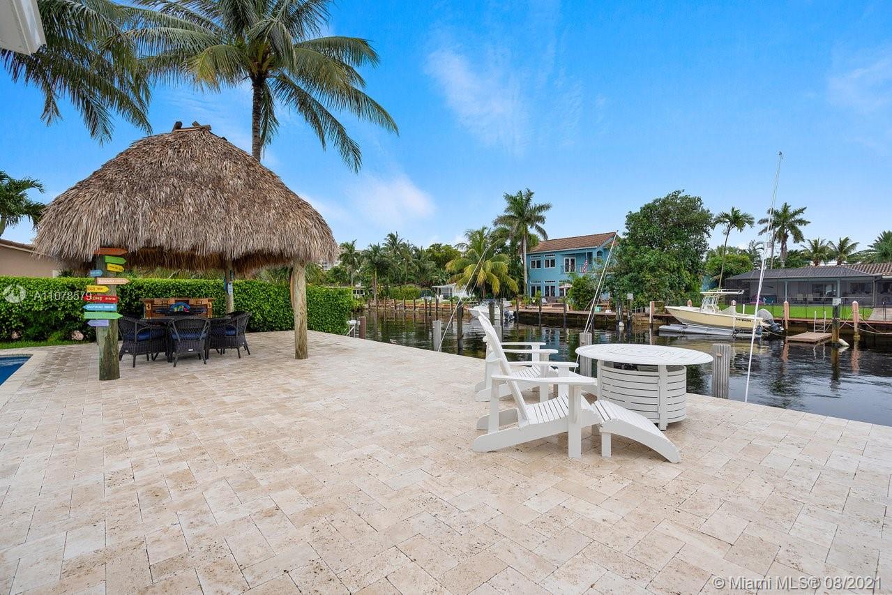 A boater's dream home with a private dock 90ft on the water and just minutes from the Hillsboro inlet and the open ocean with No Fixed Bridges. The property is Completely Remodeled and Move-in Ready. Featuring hurricane impact windows & doors, a spacious layout with wood floors throughout, beautifully upgraded kitchen and bathrooms. A work of art backyard offering a private Pool, an Outdoor Kitchen with a Tiki hut all overlooking the dock and water. Great curb appeal with tropical landscaping, circular paved driveway and a 2 car garage.