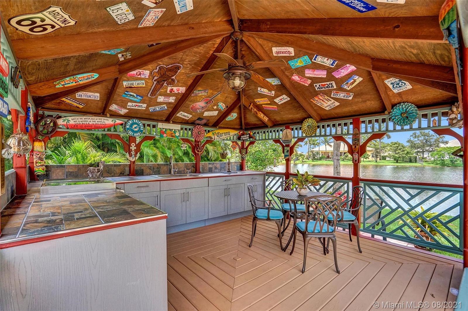 Stunning 5bed/4.5bath +den & bonus room w/3 car garage (largest model) in Riverstone on a builder's acre. Consider this hidden gem w/privacy in the front & back the perfect place to call home. Features high volume celling, formal dining, 3 bedroom split plan w/large master suite with his/her bathrooms & closets, large kitchen, S.S. appliances, wood cabinetry, M&S speaker system, fenced backyard, extended kitchen island overlooking the family room w/amazing outside views of your private Paradise. Family room has custom floor to ceiling wall unit & bar with plenty of cabinets made from Oak. Backyard is your little private resort with heated spa/pool, updated Gazebo, built in kitchen for any chef overlooking panoramic water views perfect for peace, relaxation & entertaining family & friends.