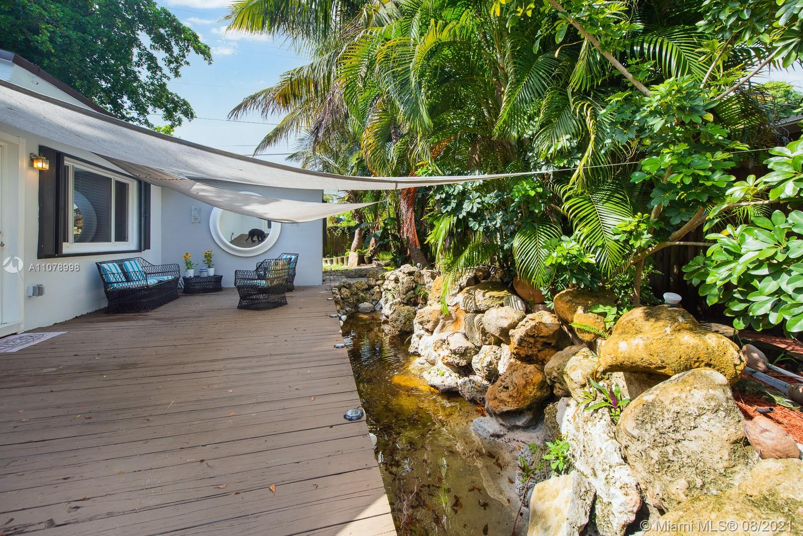 Once in a lifetime find is what you will say when you see this house. This is a cozy 2/1.5 with a den big enough to be a third bedroom, with space for another bathroom, that has been completely remodeled and brought back to it's glory days and more. This home also has a working fireplace, new roof, new AC, and most unique, a fabulous pond. The unique pond is one of a kind feature that is rarely found in a home that brings a Zen-like feeling to the house; You can just see yourself relaxing in the deck while drinking tea or coffee as you listen to the calming sound of water falling through the rocks. The location is magnificent as well as being minutes away from Victory Park, Downtown, Las Olas, Wilton Manor, and so much more. If you love restaurants, beaches, museums, you will love it here.