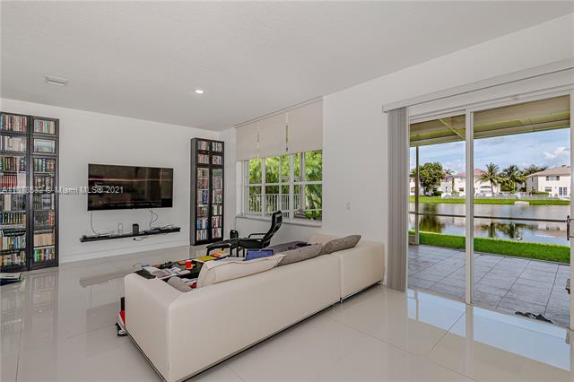 House is back on the market because buyer was dropped by the lender. Peaceful lake view, at prestigious gated community of Walnut Creek, with 24/7 security guard. 4 bedrooms, 2. 1/2 baths with 2 car garage. The whole house, upstairs and downstairs has porcelain floor. Spacious loft that could be turned into an office. Includes cable TV and lawn care maintenance. Screened backyard. over size lot. A/C Lennox signature collection 59 dB-icomfort technology, Chamberlain garage motor, washer and dishwasher are 46dB, roof's and patio tiles were treated in 2019 with a hygroscopic nanotechnology produce with 5 year warranty, clubhouse with pool, tennis court, gym, playground, low HOA. Easy showing, call listing agent for appointment.