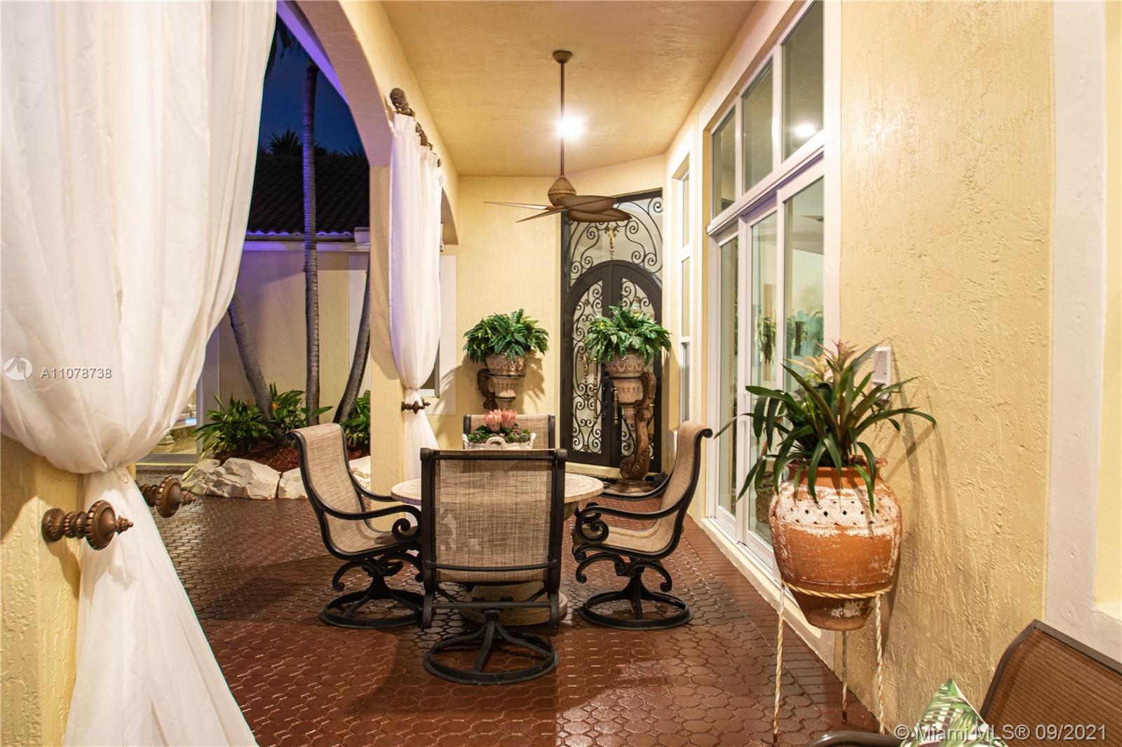 Owners just executed a contract on another property! Furnished! Former Ambry Homes model. An expanded version of the gorgeous Venice model. This unique courtyard home has been remodeled with over $600,000 in upgrades. Professionally designed and decorated with touches of Mediterranean elegance and modern design. Upon entering the home, you will experience an ambiance of elegance and glamour. White Turkish high polished marble floors and fine chandeliers are the first to experience. Then, you will step to a brand new kitchen with marble counters tops imported from Italy. SS appliances, incl. a brand new refrigerator and more. A well-equipped gym, a guest quarters, impact windows, $100K pool, built-in electric generator. Offers with a pre-approval ltr and proof of funds.