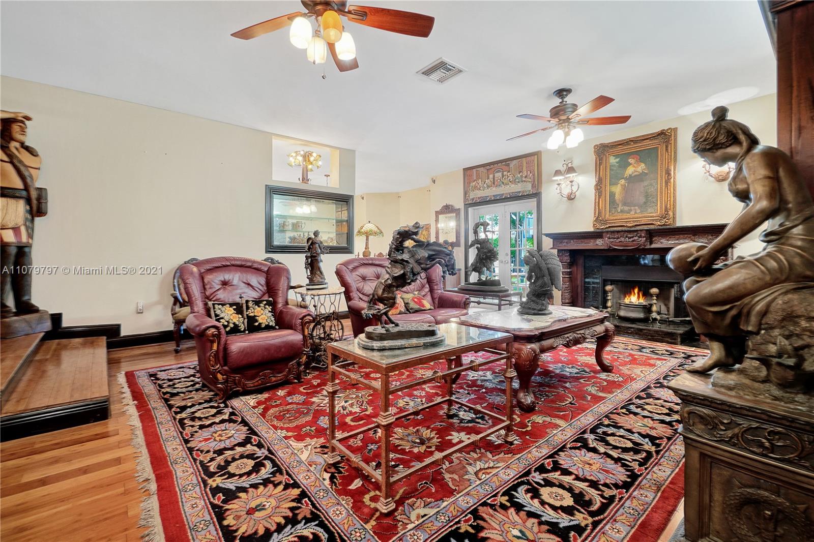 A rare opportunity to own a magnificent single family home in heart of South Miami. This homes rests under the canopy of a beautifully tree lined street on an approximately 12,887 sq/ft lot. This home feature 4beds - 3baths + a den, impact windows and doors, a large updated open kitchen, two living rooms, a formal dining room, hand carved fireplace, a true master suite with double-sink bath and walk-in closet. Half of the home is an addition, reflected on the tax roll. Septic tank replaced at the time of the addition! The property is loaded with unique features including 3 custom window seats with extra storage, natural wood and 24x24 travertine floors, 14x50 ft patio, room for a pool-boat-guest house, with many fruit trees lychee, mangos, star fruit. The lot size on tax roll is incorrect.