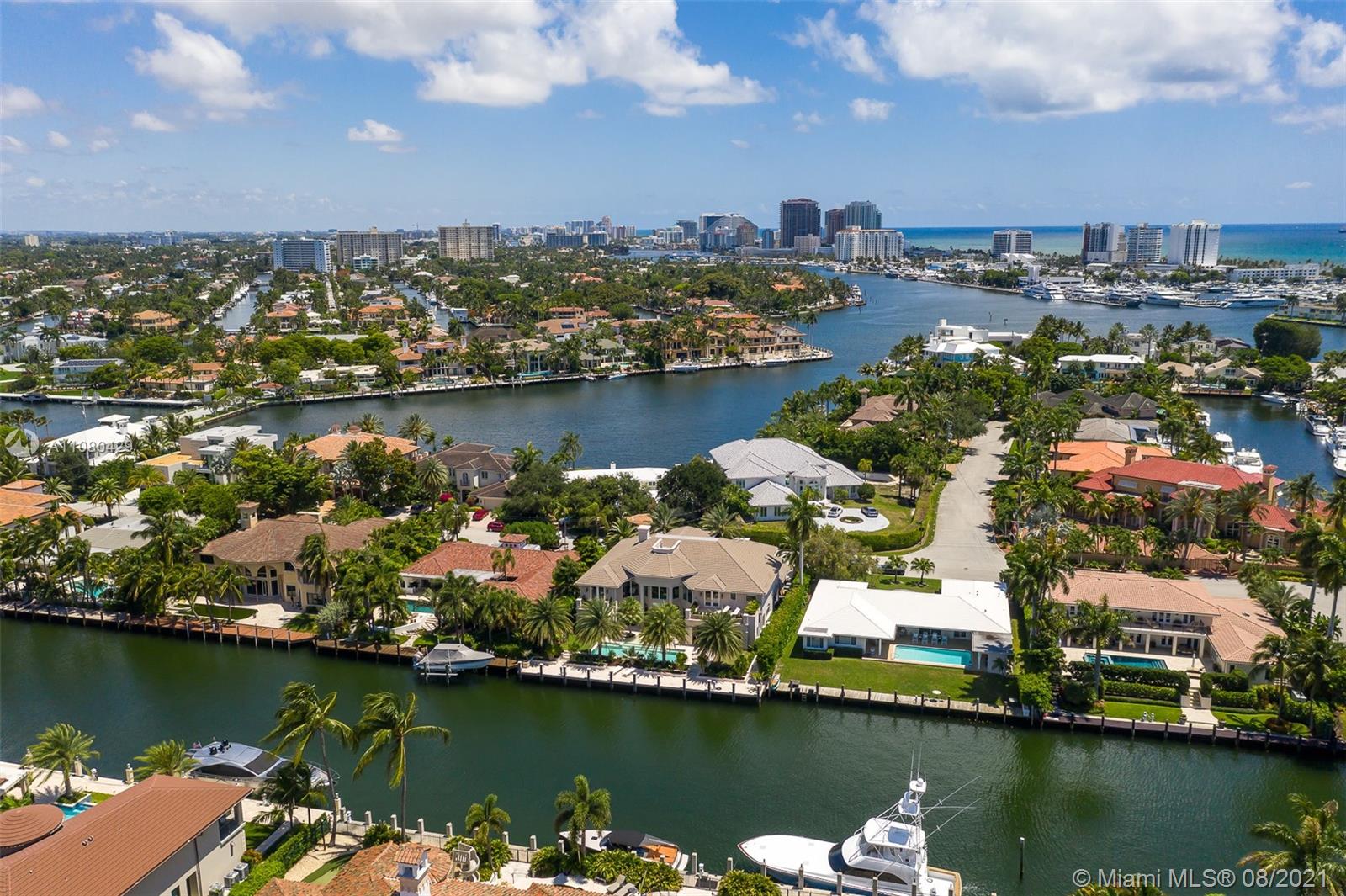 Stunning Mediterranean Luxurious Estate built in 2014. Tastefully decorated with Ultra fine craftsmanship, it is offered fully furnished with most of the art. Exclusive gated community of Harbor Beach, 6 ensuite bedrooms, 7 bathrooms, 2 powder rooms. Executive office & upstairs gym can add 2 bedrooms. Maid's quarters, 2 laundry rooms. Professional kitchen, Viking 6 burners gas range, 2 Miele ovens & 2 dishwashers; 2 Viking refrigerators/freezers.; Miele espresso bar; Butler pantry, separate temp controlled wine cellar, formal dining room, 2nd living room with fireplace, Movie/media room with extra large screen. Outdoor covered climatized summer kitchen/veranda; sundeck, large swimming pool, cabana bath, extra outdoor shower, 100 ft concrete dock. Crestron throughout & full house generator