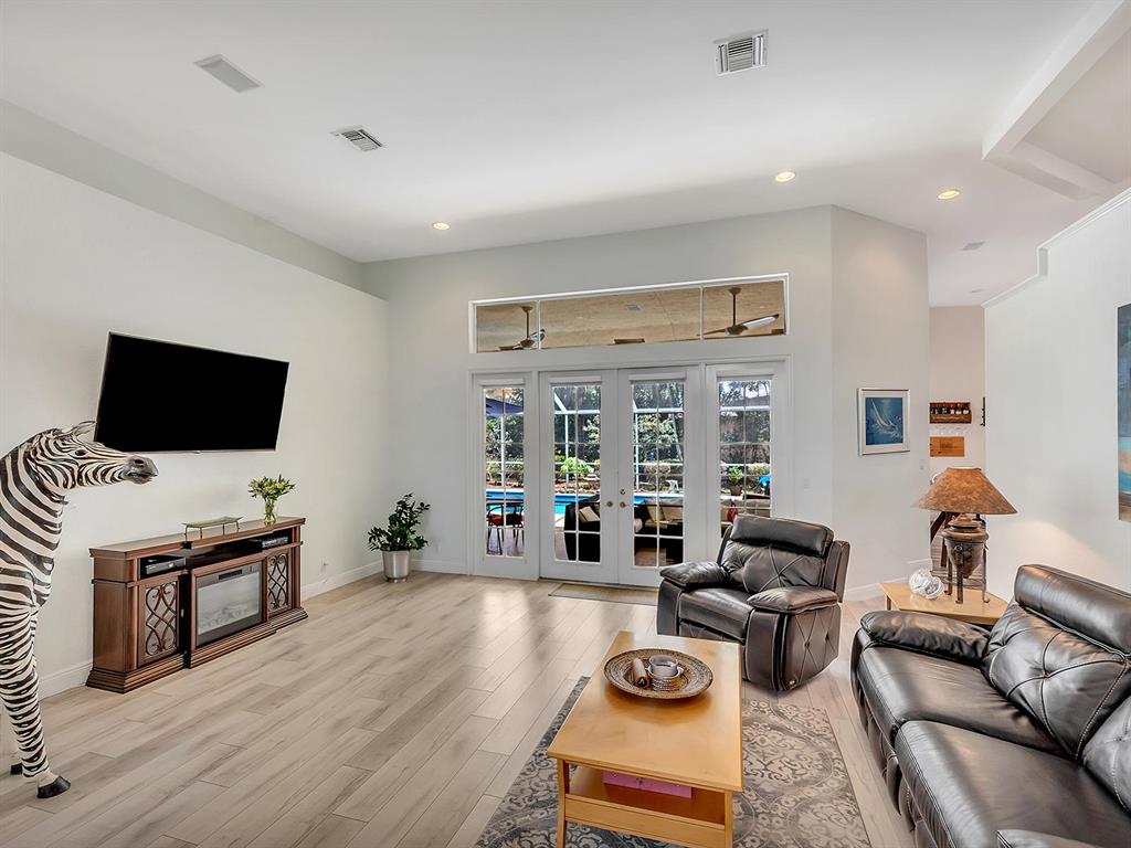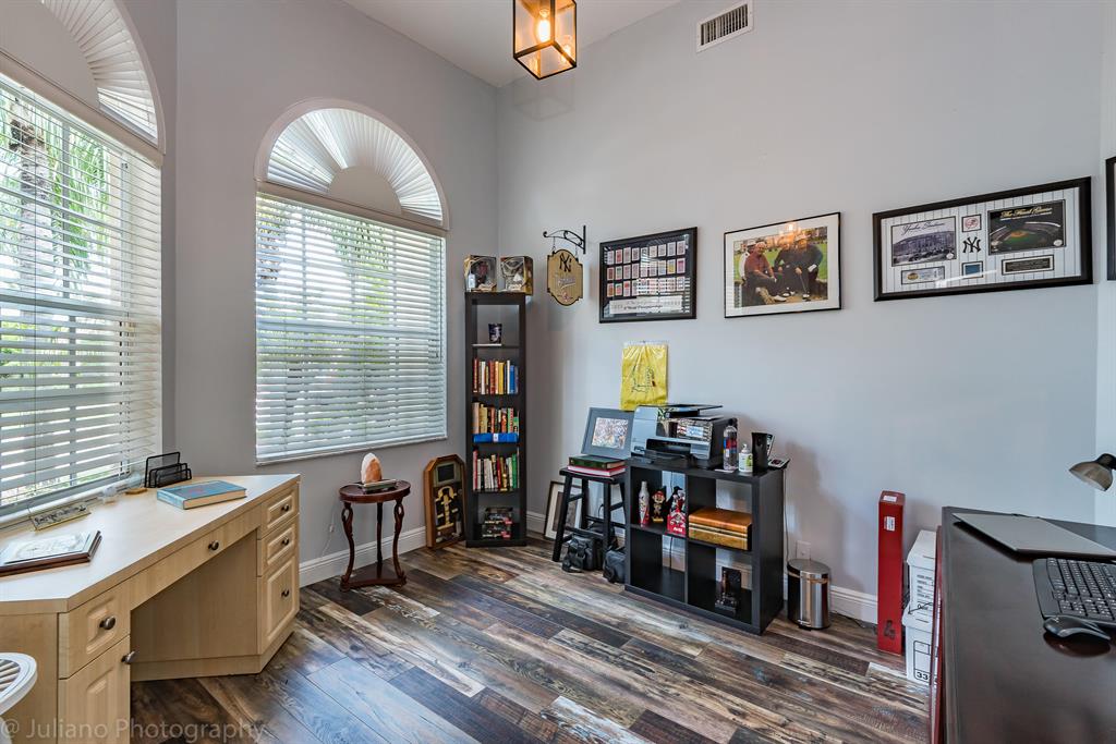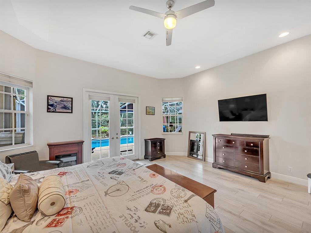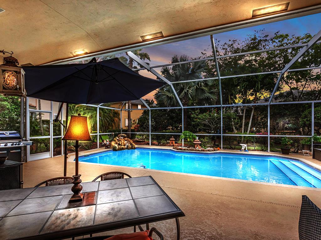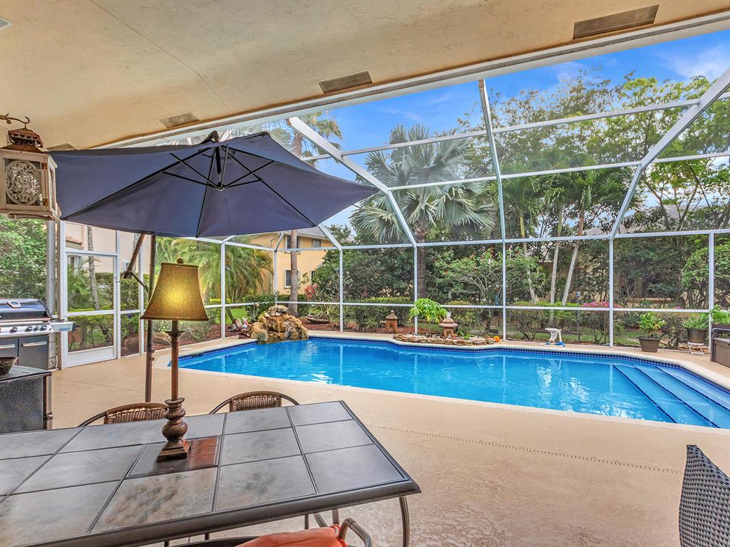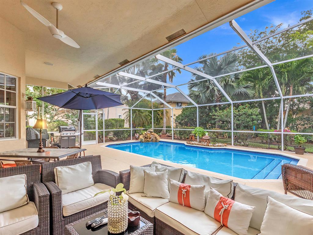 Gorgeous 5BDR/ 3.5 bath, updated pool home in Fairways at Eagle Trace. 5th bedroom is an office. Manned gate. Large lot on great Cul de Sac. Fantastic, spacious, split bedroom floor plan with lots of light! Lovely master suite, 2 large walk in closets. Stunning & expansive master bath with stand alone tub, separate shower & double sinks. Beautiful kitchen that opens to large living space & breakfast nook. Tons of cabinets with granite counters,SS appliances & huge walk in pantry. Very serene back yard, covered & screened lanai overlooking salt water pool. Cabana bath. ROOF 2015. New hot water heater, new pool heater, AC systems both have Halo/LED installed, Landscape lighting, Alarm & Sonos system. Laundry inside, 2 car garage, large circular drive. Perfect home in a beautiful community!
