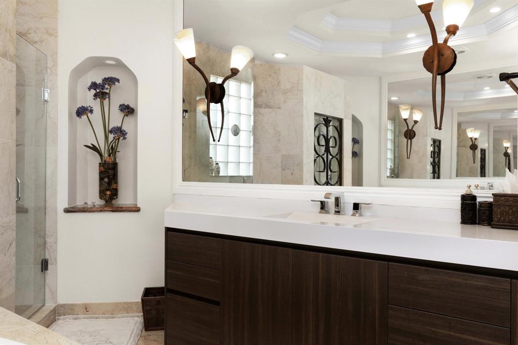 Custom Grand Estate Located In The Exclusive, Manned Gated Community of Palma Vista On Largest & Most Private Corner Lot ! Stunning 5BR 3BA Main House With Over 5,000SF ,PLUS 2BR 2BA Guest House(approx 1000SF)Long Treelined Chicago Brick Driveway Leads To An Oversized Paved Motor Court.Magnificently Manicured & Lushly Landscaped Courtyard Complete With Lighting & Seating. As You Enter Your Foyer Behold 20FT Soaring Ceilings & Sweeping Staircase. Designer Touches & Furnishings Throughout ,Your Formal Living Room Leads To Your Spectacular Kosher Kitchen ,A Chefs Dream , 8 Burner Wolf Stove , Double Oven, 2 Double Deep Sinks ,Quartz Countertops , 2 Miele dishwashers ,XL refrigerator , Under counter Miele Microwave , Custom Wet Bar Fitted With Wine Fridge. Piano excluded from sale.