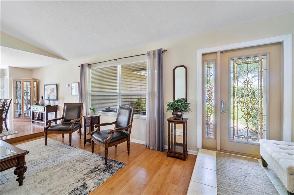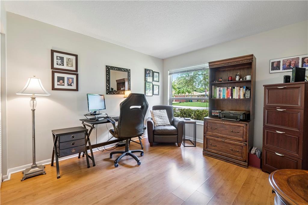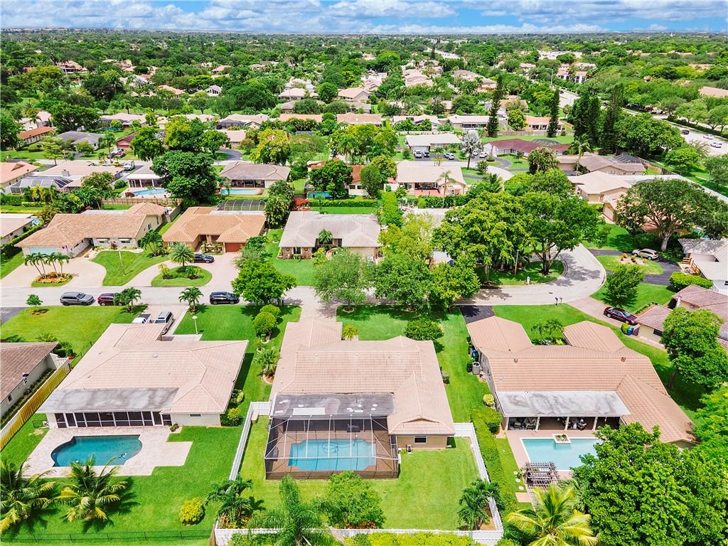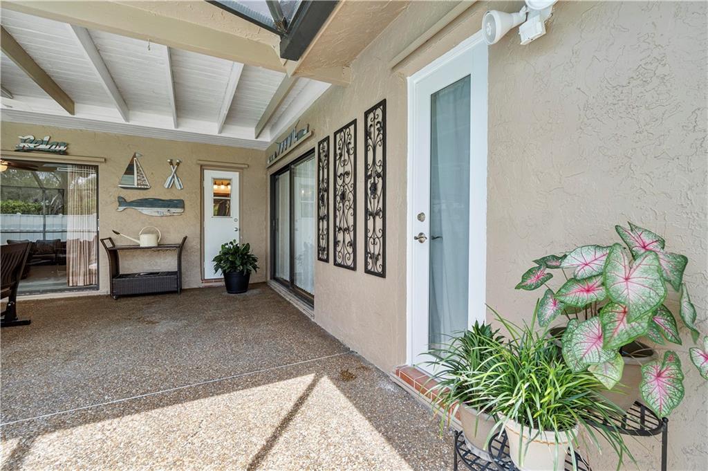 **NO HOMEOWNER ASSOCIATION** Charming home complete with impact windows/doors & hurricane panels for sliders & one cabana bath window. Sit in your kitchen, family room or Lanai, while sipping your favorite libation & gaze at your inviting screened-in pool with private (PVC shadow box) fenced-in backyard. Very large eat-in kitchen with new stainless steel appliances and opened to the family room. Formal dining and living room. Laminate wood floors in 3 bedrooms, dining room & living room. Wood look tile in one bedroom. Tile in kitchen/family room & hallways. Stunning remodeled grand bath w/cabana door. Hurricane proof garage door w/new motor. Gutters all around. Dual AC units. Samsung high efficiency Washer & Dryer. Ring Doorbell & new paver driveway! Neighborhood park around the corner!