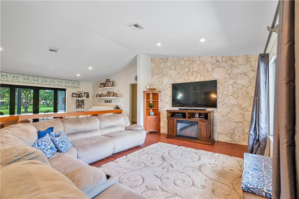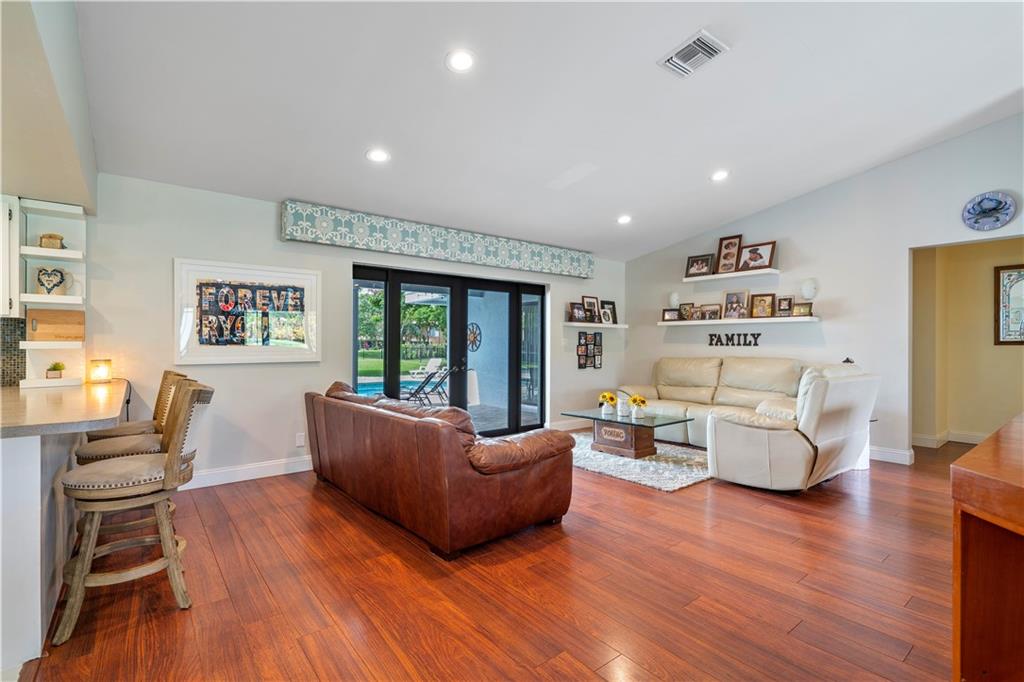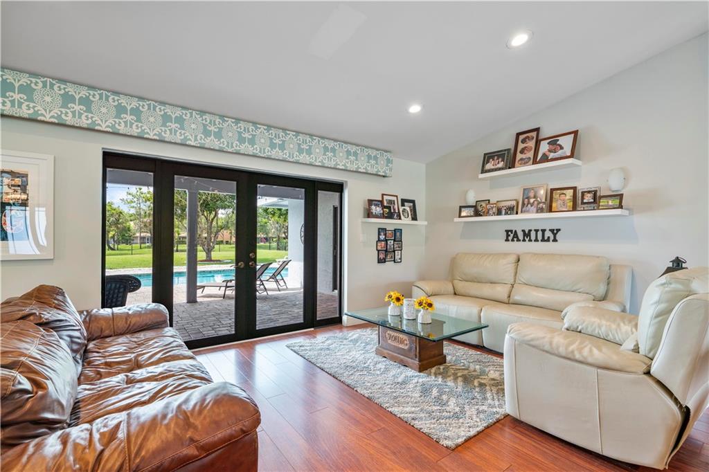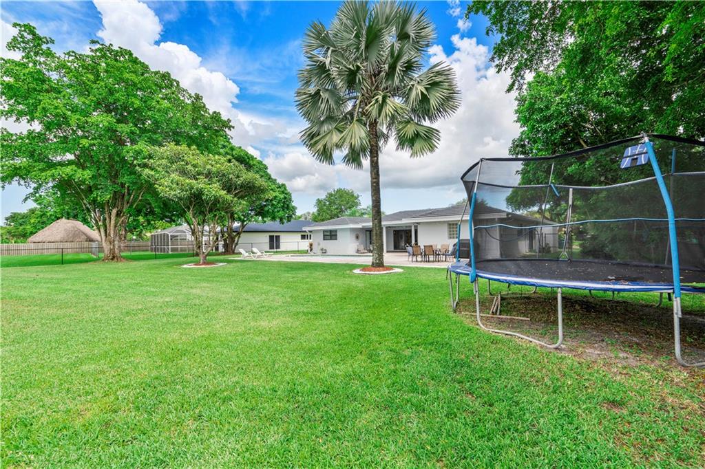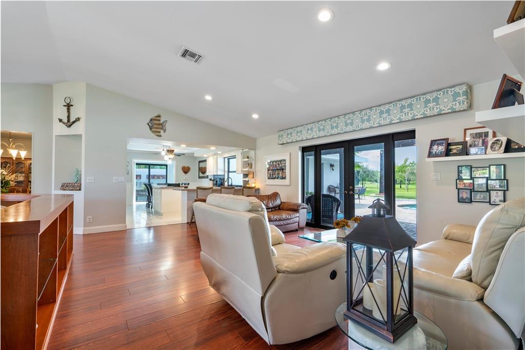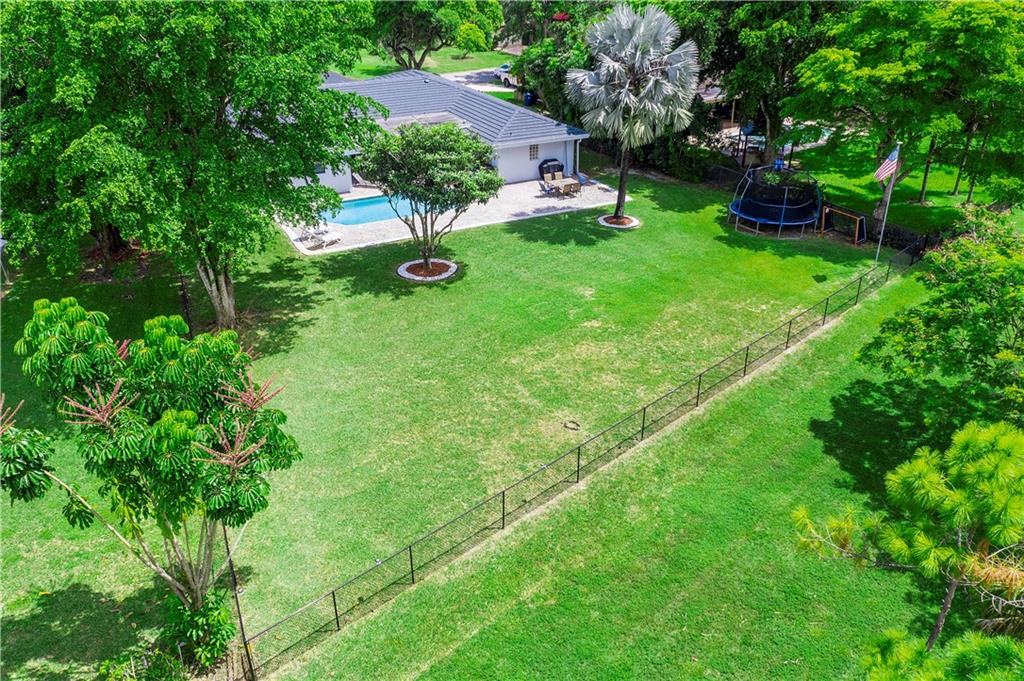 Welcome home to this well maintained sprawling 4 bedroom plus office/flex room with 2.5 baths on nearly a 1/2 ACRE (17,845 sf)! Serene outdoor living in sought after Maplewood. NO HOA!! Resort style pool with paver deck, fenced backyard and separate dog/play area overlooking picturesque park that has tennis, tot lot and walking trails!. All windows and doors are IMPACT except 2 glass block bathroom windows have shutters/garage is not impact. Open kitchen to living areas. Freshly painted, newer AC, new French doors, coral rock wall, smooth ceilings. Whole house ducts recently cleaned! Primary bedroom wing on one side(split bedroom plan) and 3 large bedrooms on other side of home for plenty of privacy. Jetted tub, saturnia floor, dual sinks. Master bath is a cabana bath. A Rare Find.