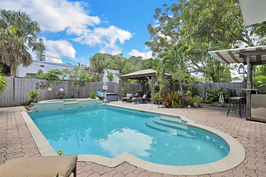 This gorgeous Spanish style home moved to this site is old Florida charm with today's tech/building materials. Fully restored with smart home automation, hd-tv and speaker pre-wired, automatic sprinklers plus a pool installed 2016.The kitchen is huge with gas cooking stainless appliances and granite counters adjoins an oversized formal dining room. The hardwood floors and fireplace are beautifully restored and vintage 1920's. Seller replaced all windows withimpact glass 2017, washer dryer water heater, fresh stucco and repainted, added outdoor Tiki summer kitchen/bar and spectacular grill. Fabulous private/fenced backyard with pool is ultimate me time or entertaining.