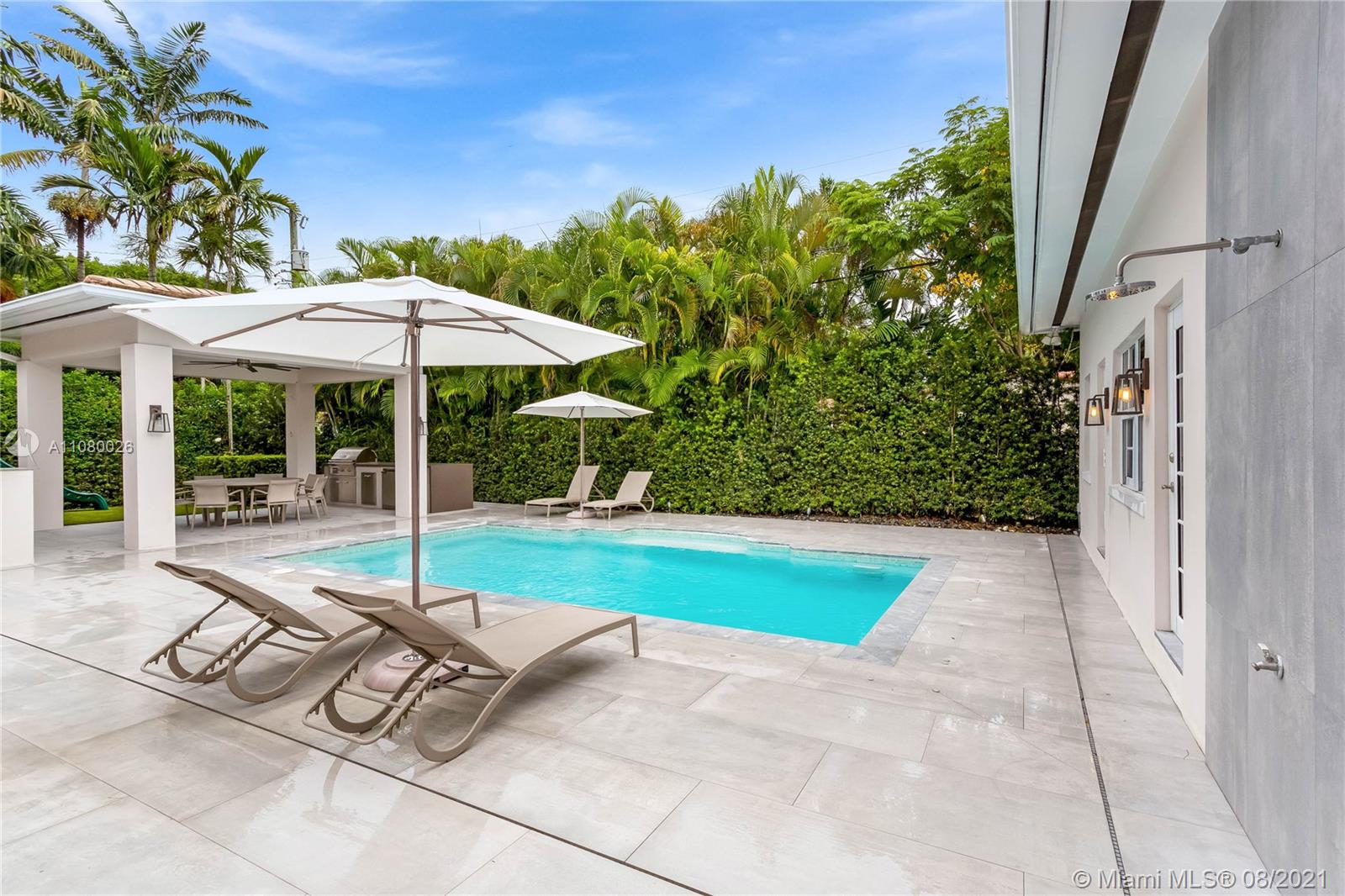 Marvelous renovated and fully furnished (2018) one-story Coral Gables home professionally designed by Adriana Geleilate from AD Interiors! With a combined total area of 3,344 sqft the main home features 3 bedrooms/2.5 bathrooms, large living area, office, stunning gourmet kitchen with a gas Bertazzoni Italia professional range, heated salt water pool, laundry area and a massive two-car garage. The guest home has an en suite with an office and a well equipped gym. Along with the pool the outside features a spacious turf play area and gazebo+bbq area. The home also has a generator, Tesla charging station, and indoor+outdoor security systems. All windows are impact glass. Numerous ADA features included! Enjoy being minutes from Miracle Mile, University of Miami, Biltmore Hotel and much more!