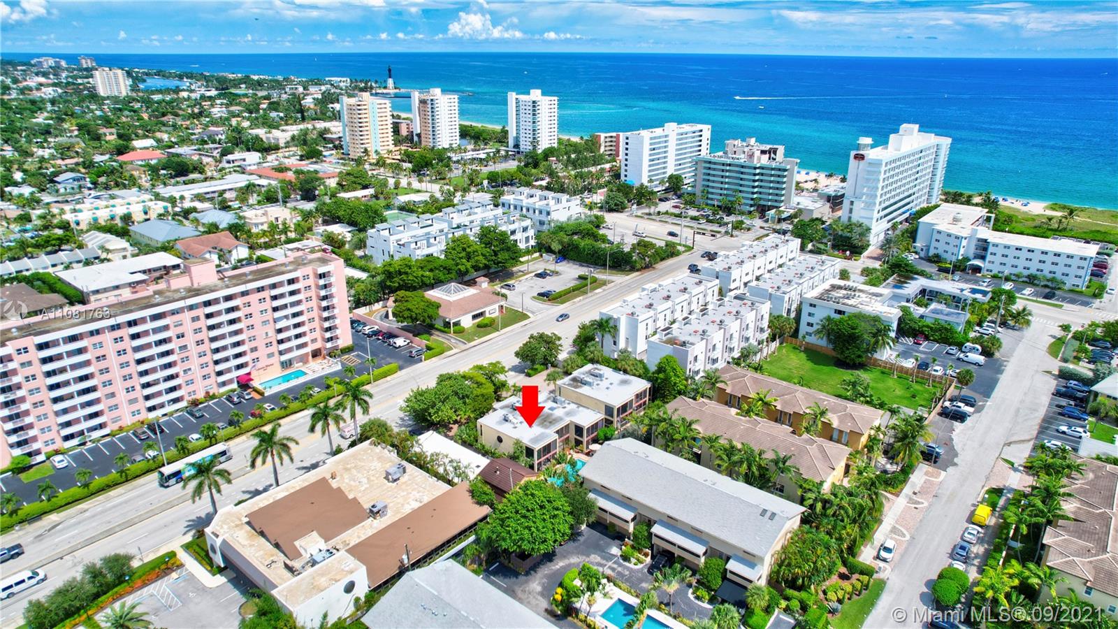 Welcome to Camelot! Your Beach Bungalow awaits you! This charming 2BR/2.5BA Townhome is just a hop, skip and a jump away from the beach! This cozy little gem sits in a quiet small complex of only 7 units just east of the Intracoastal Waterway Bridge. Features include a tropical screened in patio just steps from the pool, a wrought iron spiral staircase, sky lights, stainless steel refrigerator and stove, lots of closet space, new roof, appliance home warranty contract and more! Take a leisurely stroll to restaurants, banking and boat ramps. Publix, beach boutiques, fishing pier and the Pompano Citi Centre Shopping Mall are within a five to ten minute drive. Pets allowed with association approval, no aggressive dog breeds allowed. Two parking spaces come with unit. Can rent right away!