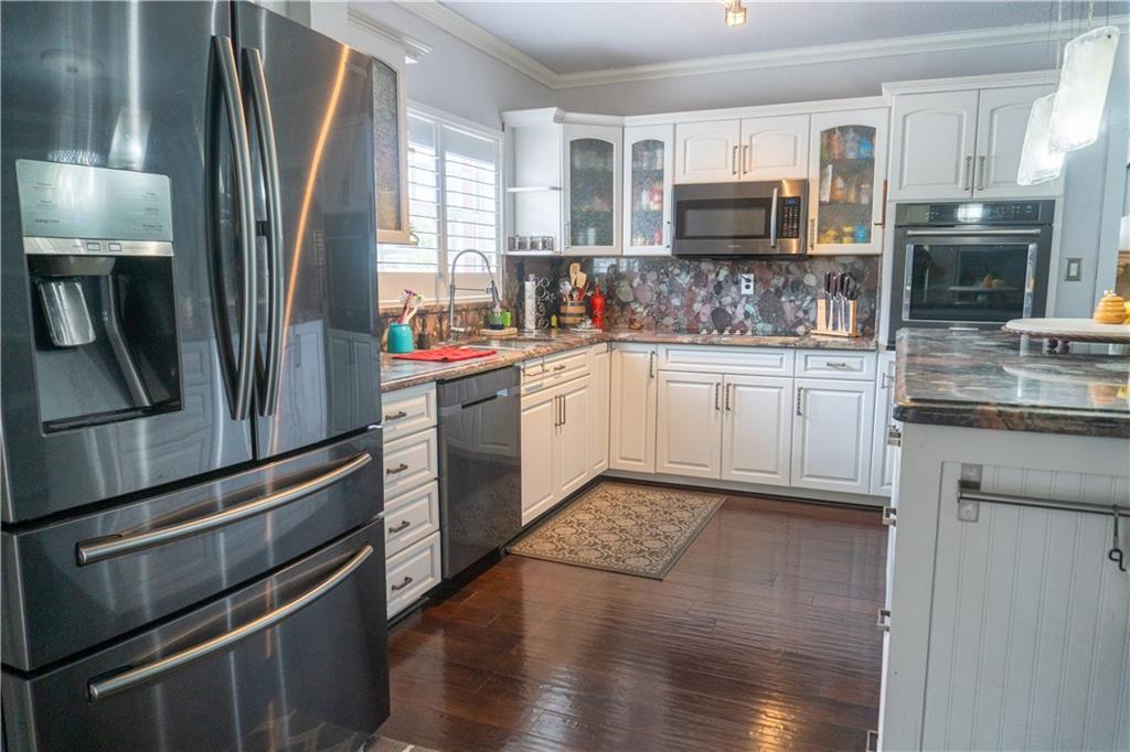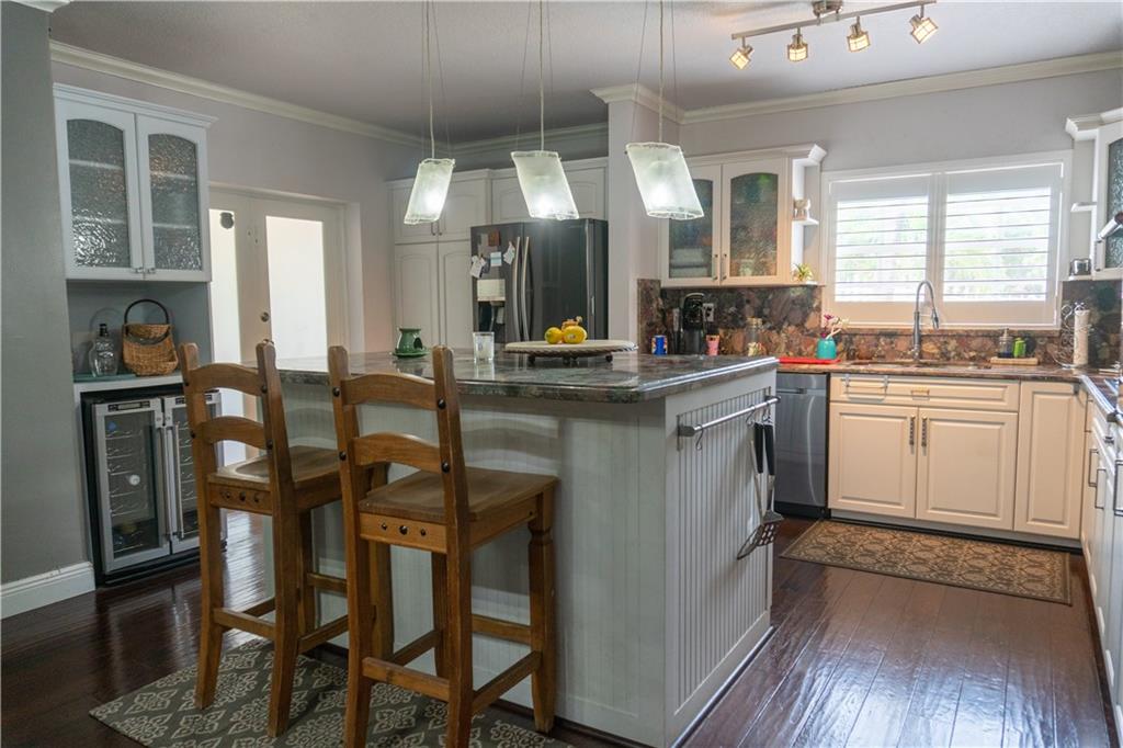 Look no more! This 3 bedroom, 2 bathroom home features all the amenities: Upgraded kitchen with custom made real wood cabinets, large island, exotic granite countertops and black stainless steel appliances; sunken living room with real wood burning fireplace and USA made engineered hardwood floors throughout the home. Master bathroom includes both bathtub and walk-in shower. Back patio is screened with keystone columns and a pool table may be included with the sale of the home, if desired. Backyard also holds 3 sheds for ample storage. Adjacent to the covered patio is a stainless steel barbeque with hood and keystone counter top. Outdoor shower installed. Home is secured with a 6-foot aluminum fence. Driveway houses 5-6 cars. Brand new a/c recently installed with new air ducts and vents.
