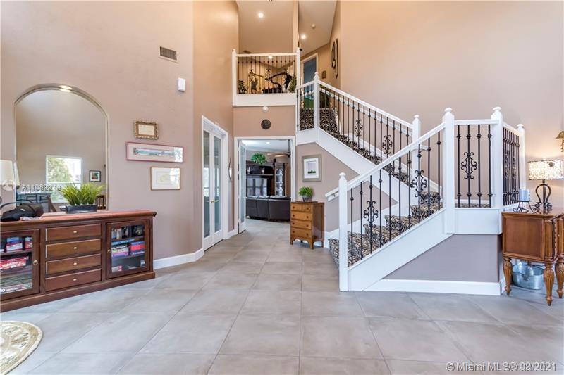 STUNNING HOME ON PRIVATE CUL-DE-SAC W/WIDE LAKE VIEWS! AS SOON AS YOU ENTER YOU WILL NOTICE THE GRAND STAIRCASE, TWO STORY HIGH SOARING CEILINGS & NEW EUROPEAN PORCELAIN FLOORS. NEWLY UPGRADED CUSTOM CHEFS KITCHEN W/OVERSIZED ISLAND, GRANITE COUNTERTOPS, WOOD CABINETRY, WINE FRIDGE & NEW TOP OF THE LINE APPLIANCES. ON THE LOWER LEVEL YOU HAVE AN OFFICE & TWO BEDROOMS, ONE OF THE BEDROOMS HAS SLIDERS LEADING OUT TO THE POOL & LAKE. ON THE UPPER LEVEL YOU HAVE THREE ADDITIONAL BEDROOMS, SPACIOUS LOFT & LARGE MASTER SUITE W/SEPARATE SITTING AREA, WALK-IN CLOSETS & PRIVATE MASTER BATH. THE FULLY FENCED-IN BACKYARD IS THE PERFECT PLACE TO RELAX OR ENTERTAIN W/NEWLY REFINISHED SALT WATER POOL & SPA W/HEATER. HUGE GRASSY AREA, WIDE LAKE W/BEAUTIFUL SUNSETS. PROTECTED BY ACCORDION SHUTTERS.
