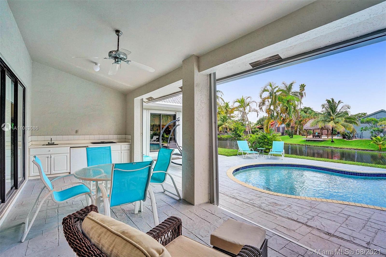 This "Durbin Built" home is located in Rock Creek which has 4 bedrooms and 3 1/2 bathrooms plus a den. The master suite is approximately 700 square feet - 2 large rooms separated by the walk in closet and master bathroom...love it! INTERIOR FEATURES: STACKED BEDROOMS*SKYLIGHTS*EAT IN KITCHEN INCLUDING A BREAKFAST BAR*INTERIOR LAUNDRY ROOM*DEN CAN BECOME AN NSUITE AND HAS ITS OWN BATHROOM PLUS A DOOR LEADING TO EXTERIOR*2 1/2 BATHROOMS HAVE BEEN REMODELED*MASTER HAS ROMAN TUB & SEPARATE SHOWER*LOTS OF STORAGE*TILE THROUGOUT MAIN LIVING AREA*HI HATS AND MORE! EXTERIOR:BRAND NEW S-TILE ROOF*CIRCULAR DRIVEWAY*CUL DE SAC STREET*WATERFRONT*INGROUND POOL*SUMMER KITCHEN*HURRICANE PROTECTION THRU-OUT*LARGE ROOF PATIO*:NICELY LANDDSCAPED! COMMUNITY POOL, TENNIS, TOT LOTS AND MORE!