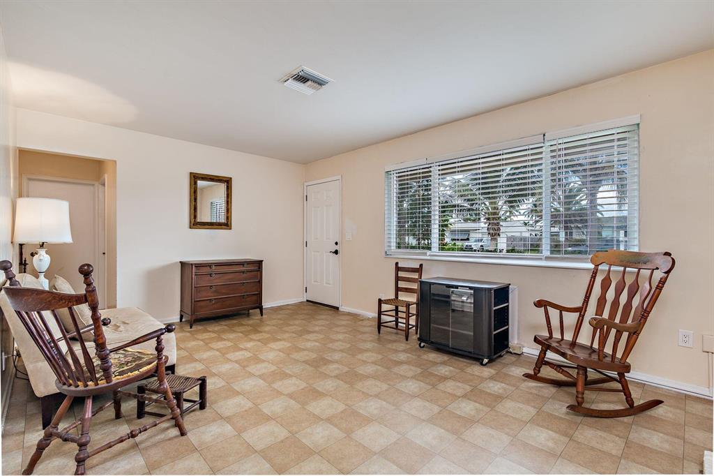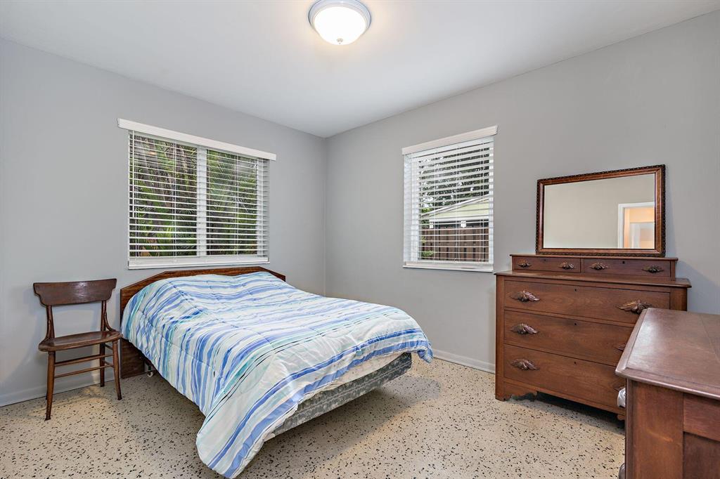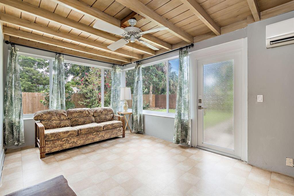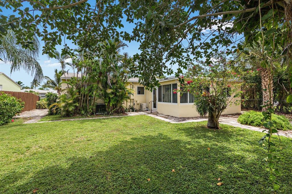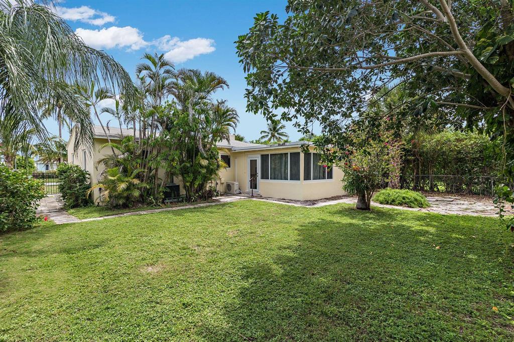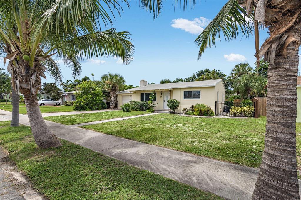 Great Southend opportunity. Wonderful 3 bedroom and 2 bath home on large lot with one car garage and room for pool. This clean CBS ranch home awaits your design and decoration choices to become an outstanding residence for you. With some updates already completed such as impact windows, newer air conditioners, electrical updated in 2019 and 2020, rear fence in 2016, major expenses have been addressed. Original terrazzo floors (covered), cypress beamed ceiling in family room and on a very quiet street, this residence offers a great value and location. Close to elementary school, newly established tennis center, water park, intracoastal, shopping, I-95, airport, beaches and downtown West Palm Beach.