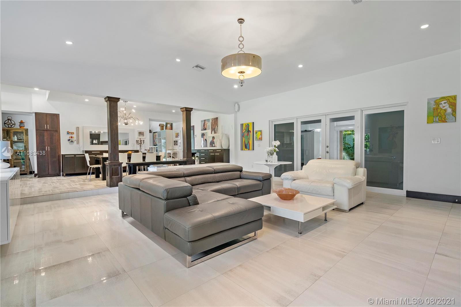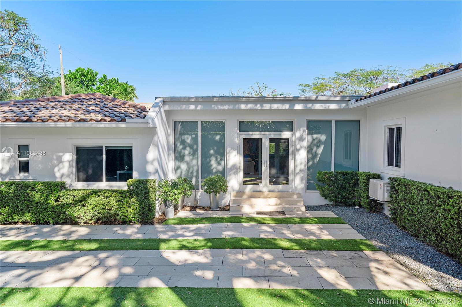 Spectacular 5+/4 4,000 sf home on corner .37 acres voted "House of the Month" by Miami Shores village. Spacious, completely updated, light-filled, vaulted ceilings, fireplace, two large, gated, private yards, impeccable, majestic gardens, mature trees and hedges, two driveways, garage, uniform blinds throughout, open concept kitchen, dining and family. Roof only 10 years, new ac unit, all doors and windows hurricane impact. No projects. Move in ready. Nothing like it in Miami Shores. Close proximity to schools, houses of worship. Easy drive anywhere. 24 hour notice for showing please.