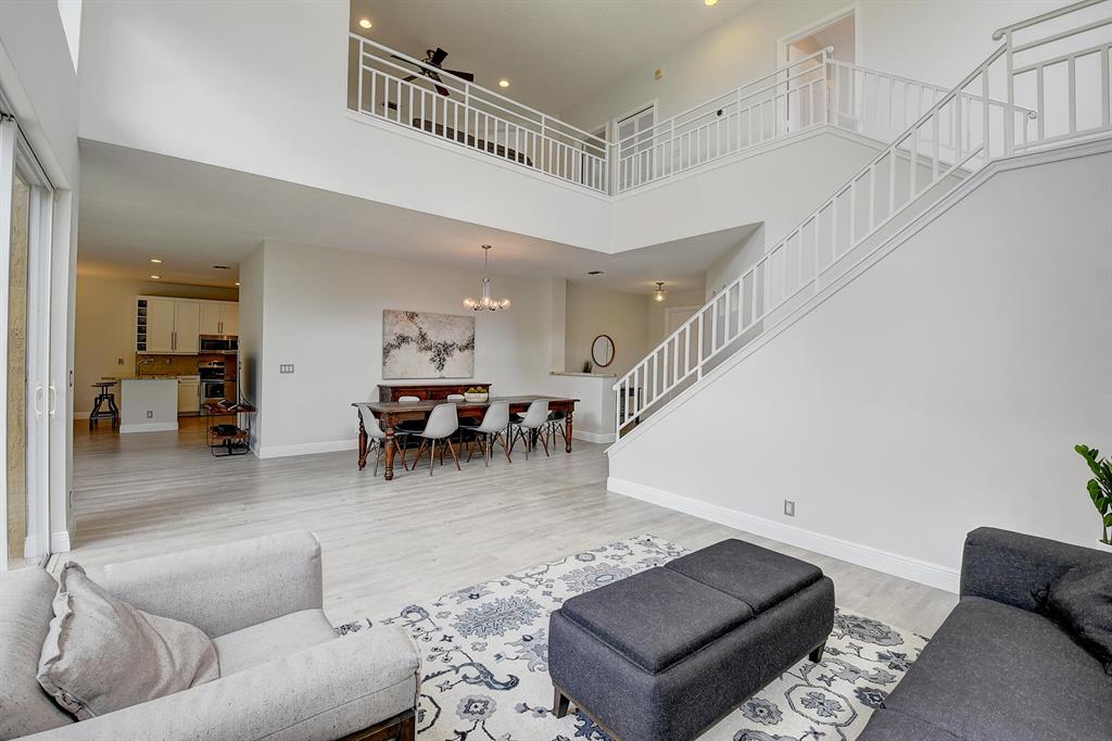 Open floor plan with plenty of natural sunlight, this lovely two-story home offering 4 bedrooms plus a loft & bonus room & 4 baths has been beautifully remodeled featuring volume ceilings; grey wood grain laminate flooring throughout; a remodeled kitchen with white cabinetry of contemporary shaker design, granite countertops, glass backsplash, stainless steel appliances, custom pantry & a charming breakfast nook; a remodeled Master Bath with new cabinetry & granite counters & new tile floors; remodeled secondary bathrooms; large walk-in closets; freshly painted walls of FLAT wall finish in the living areas & loft; newer washer & dryer; newer main air conditioning system; and a private open patio of travertine pavers with a spa. Ready to just move right in!
