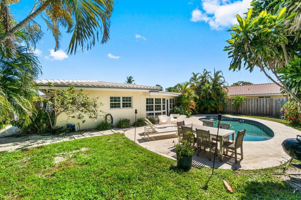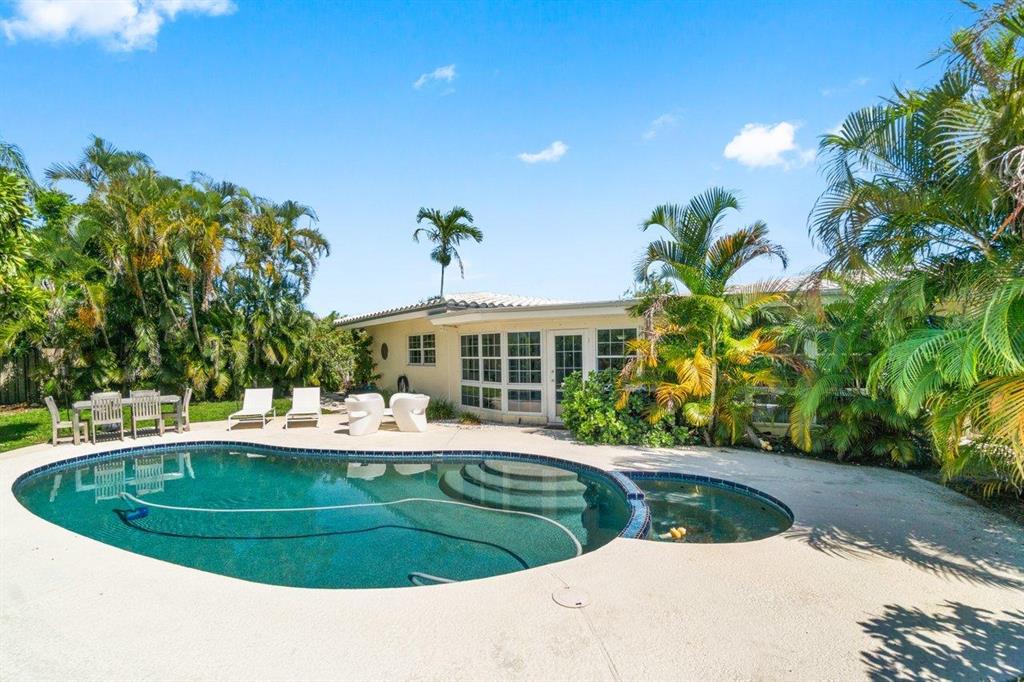 This home is in the perfect location! Very quiet neighborhood, high end, no traffic, placed at the end of a cul de sac! Main access to this very charming home through a lovely private front Patio. Very spacious living room overlooking a beautiful pool. Large kitchen with dining area and separate entrance from garage. Enjoy this private fenced tropical garden. Recently painted, Split bedrooms, Florida room, renovated bathroom, new flooring.
