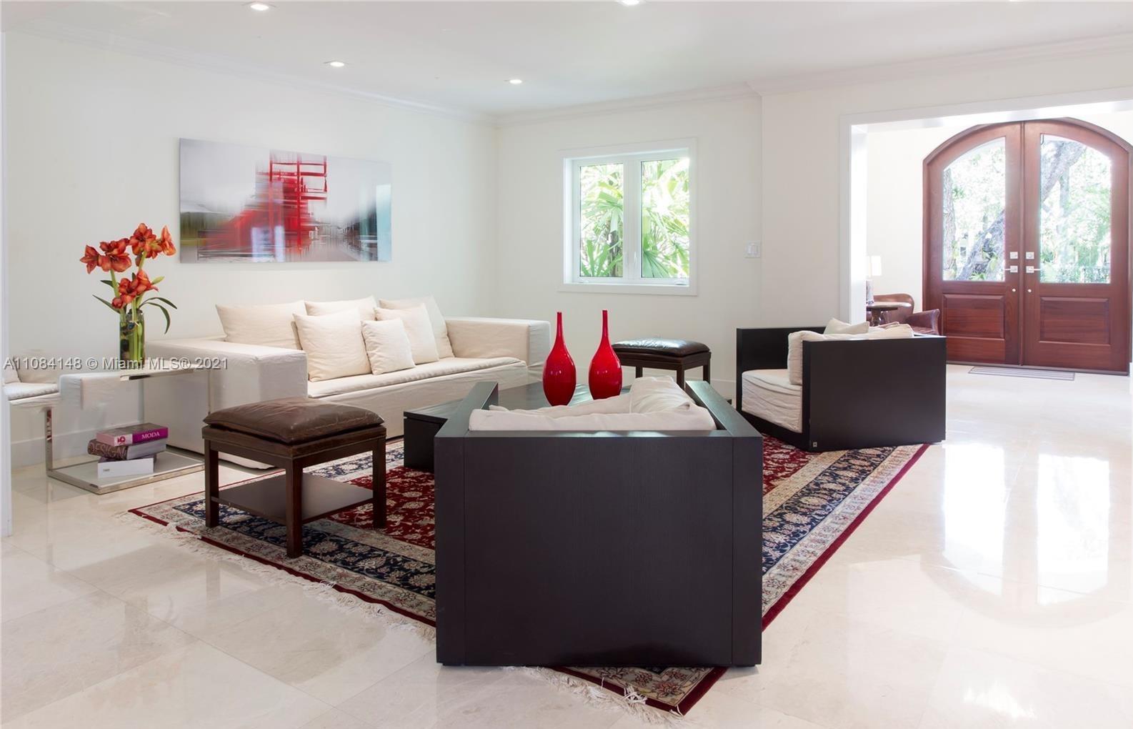 COMPLETELY REMODELED IN 2014, 1-story modern/contemporary home perfectly set on a 15,000 SF lot. Situated in PRESTIGIOUS RIVERA SECTION centrally located with quick access to the top private schools Miami has to offer, featuring 5BDS and 4 1/2 BATHS/Den/Office/Large family room, 4-car drive way space and a circular driveway. The master suite features a sitting area + an office, and 2 walk-in closets. The kitchen features stainless steel appliances, white siltstone countertop & glossy white cabinetry. The spacious breakfast area looks out to a heated salt-water pool. All bathrooms feature new tiles, glass shower doors, and new vanities. Smooth textured walls and marble floors. Led lighting system, 2 AC units 2014, & impact windows and doors, Custom Closets and cabinetry.