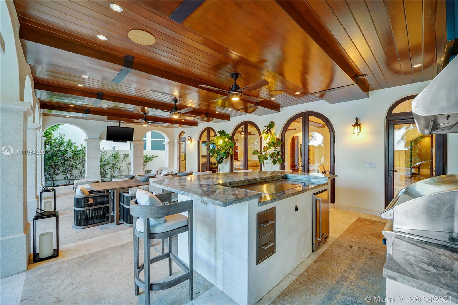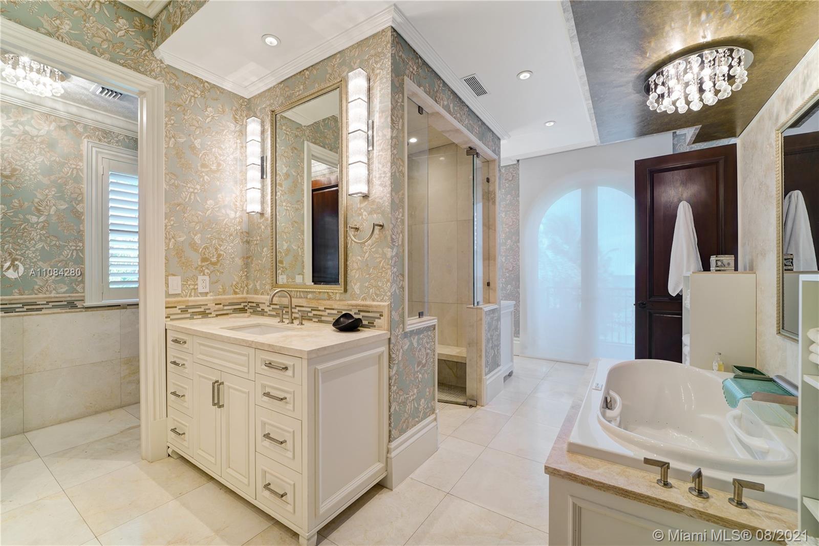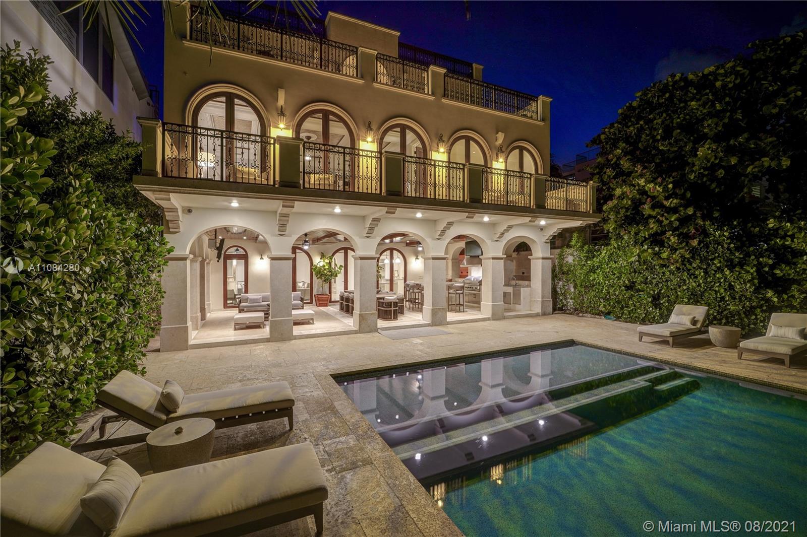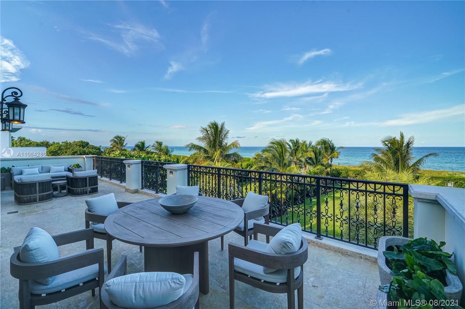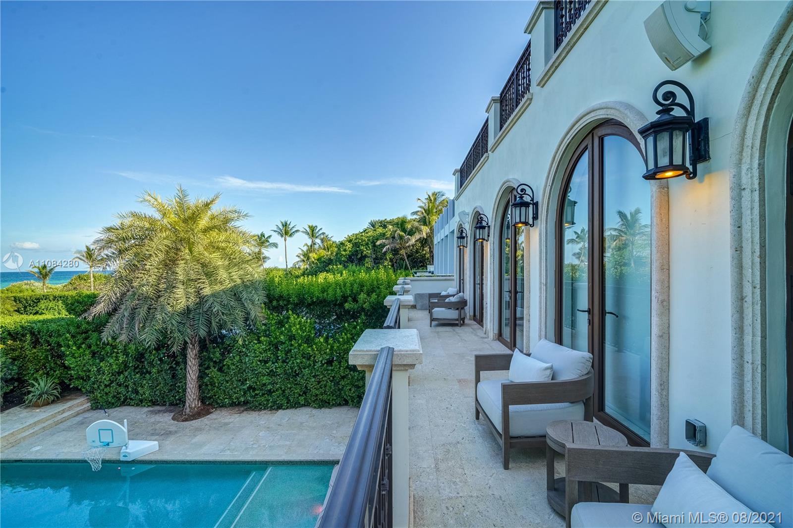 Start the day w/ a sunrise walk along the beach from private, guard-gated Altos Del Mar villa DIRECLTY ON THE OCEAN at highest flood elevations in Miami Beach. Turnkey opportunity with brand new furnishings & a Raymond Jungles-designed landscaped garden & rooftop terrace. 1st floor cabana kitchen & family room (plus two bedrooms) opens to covered loggia w/ summer kitchen & bar. Enjoy privacy in the infinity pool while guests lounge on grassy areas or walk a few steps to the beach. Enjoy views from 2nd floor master w/ private terrace, his/her master bath toilet rooms/sinks & three additional bedroom suites. Stunning vistas from 3rd floor kitchen, living, dining, & family rooms and seaside dining terrace. Two detached 2nd floor guest suites in 3 car carriage house for 7 parking spaces total.