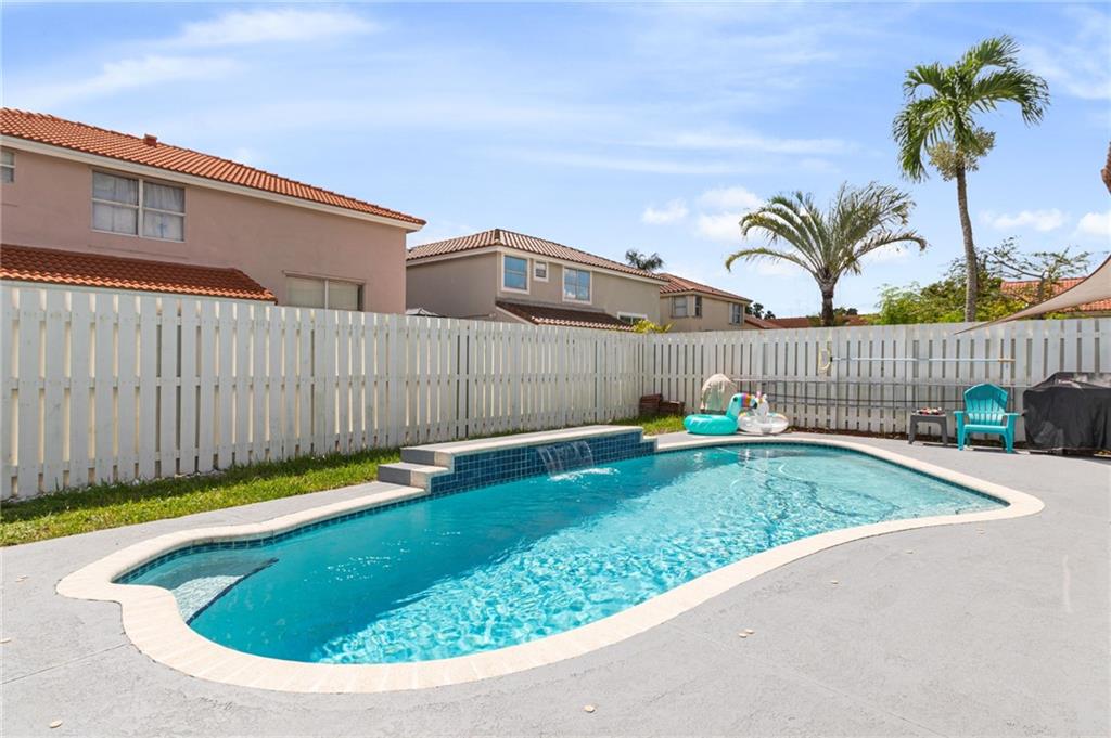 This is your chance to own in The Residences of Sawgrass Mills. This corner lot 4 bedroom, 2.5 bath 2 story home features recently added impact windows, sliders and an impact front door and volume ceilings in the living and formal dining area. This home also features 2 separate sliding glass doors that lead out to the pool area in your private fenced in yard and leaves enough room for entertaining in the grass area, or on the deck. The pool comes with a child safety fence. Enjoy walks in this quiet, family friendly community, which is also a short drive to the Sawgrass Mills Mall, and a lot of local dining options and shopping, and is close to 595, and I-75.