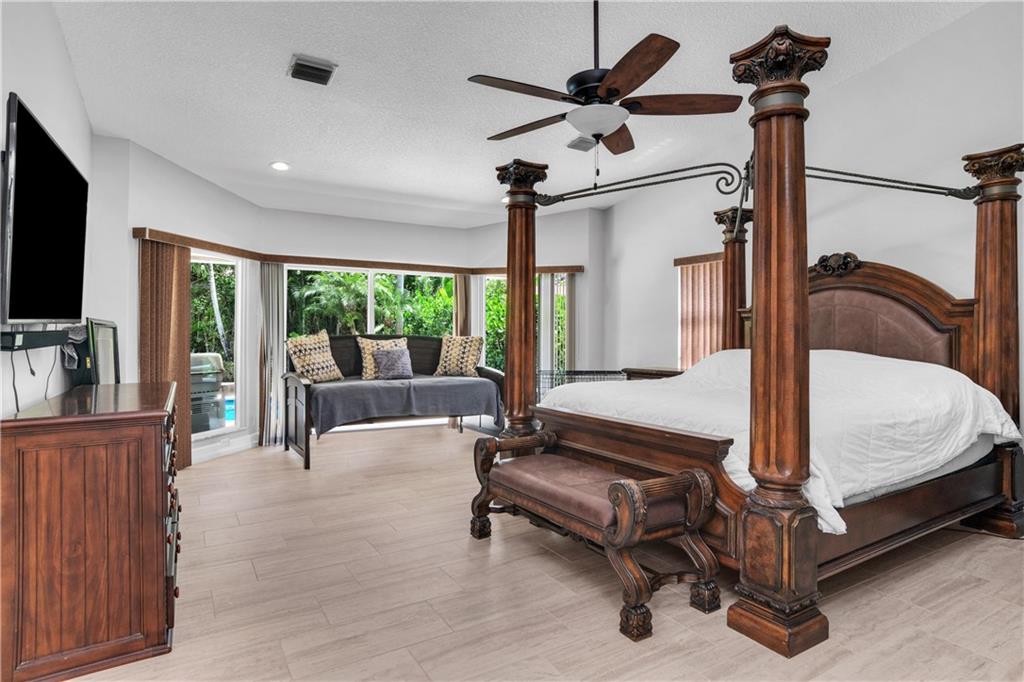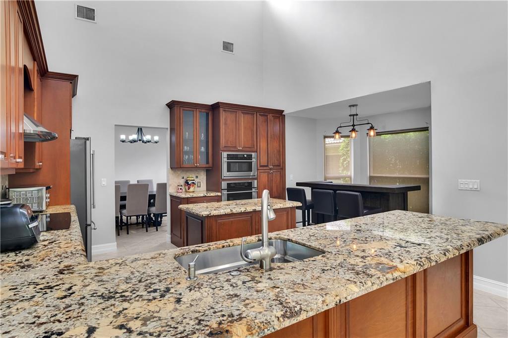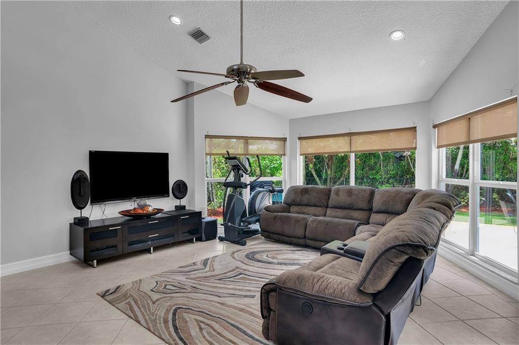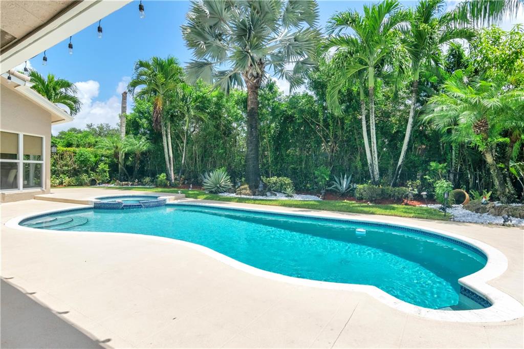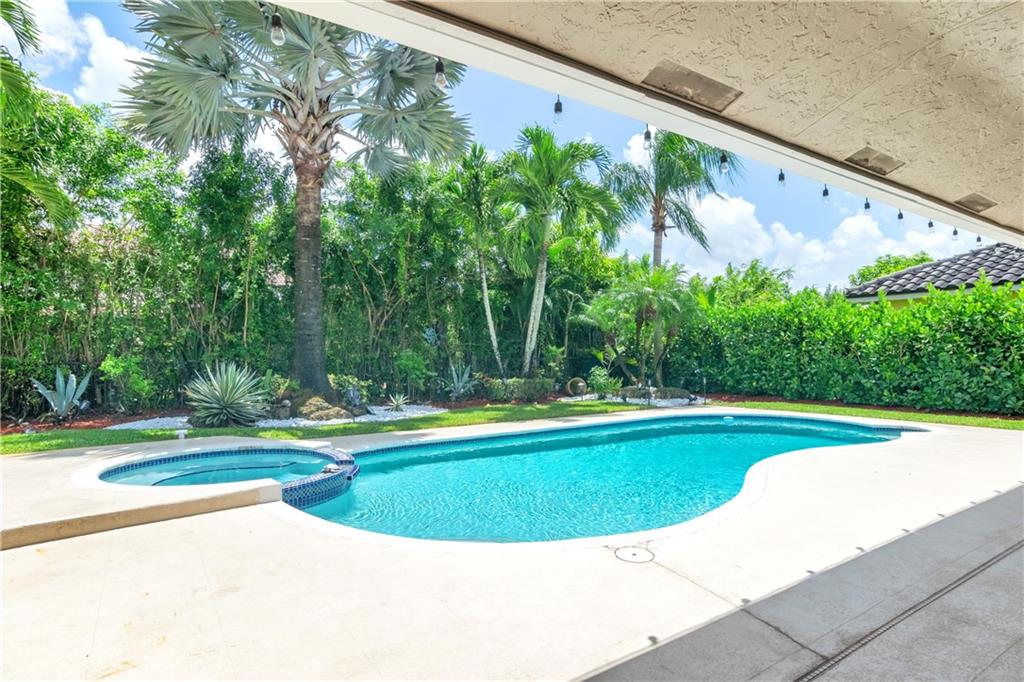 Rarely available home in the guard-gated community of Ridgeview. This Beautiful and open home has 4 bedrooms, 2 full bathrooms, and 2 half bathrooms. All 4 bathrooms were recently remodeled and the home is freshly painted. The home boasts expansive vaulted ceilings, skylights, impact windows, tile floors, fireplace, heated pool with saltwater chlorinator, hot tub, granite countertops, stainless steel appliances, tons of natural light, and plenty of storage area. There is also a separate laundry room and sink. Lush tropical landscaping creates a backyard private oasis. Home is 2 minutes to Sawgrass Expressway and close to dining, shopping, and entertainment. In walking distance to Target, Movie Theaters, and Miniature Golf.
