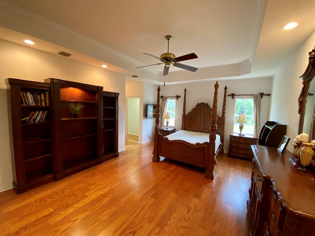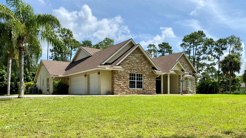 Amazing 4BR/3BA home with 3 car garage, and game room on a huge 1.5 acres corner lot with No HOA! Game room has a full bath and wet bar! Home is in excellent condition with many custom upgrades including beautiful cascading wood burning fireplace, tall ceilings, hardwood floors, stonewall exterior, large screened patio, copper accents on roof, very large brick paver driveway, fruit trees, wood blinds, crown moulding, recessed lighting, under cabinet lighting, reversed osmosis under kitchen sink, large walk-in attic and many more. New garage motors (2019), new hot water heater (2019), new pressure tank (2019) and water pump (2020), new a/c condenser (2019), new refrigerator (2020), new water softener system (2021). Owner to install new oven, microwave, and dishwasher.