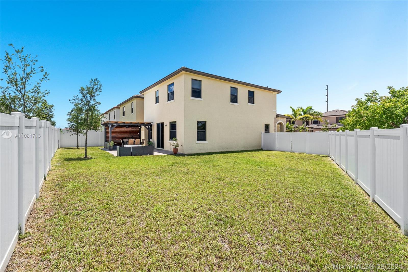 This gorgeous 3 bedroom 2.5 bath smart home built in 2019 is inside the gated community of Aquabella. The home boasts over 2,400 sq. ft. of living space and an almost 6,000 sq. ft. lot. All smart connectivity is through the Amazon Echo Show (Ring, Honeywell AC). Porcelain tile throughout the 1st floor. What a treat to have a laundry room upstairs with front loading Samsung washer & dryer! This corner lot has a big backyard with enough room for a pool with constant sunshine. Travertine patio with pergola included in the sale. The kitchen has a pantry and stainless steel appliances. Hurricane shutters included. The Aquabella community has pristine amenities such as a gorgeous resort-style pool with cabanas, gym, deluxe clubhouse and splash park for the kiddies! CHECK OUT THE VIRTUAL TOUR!