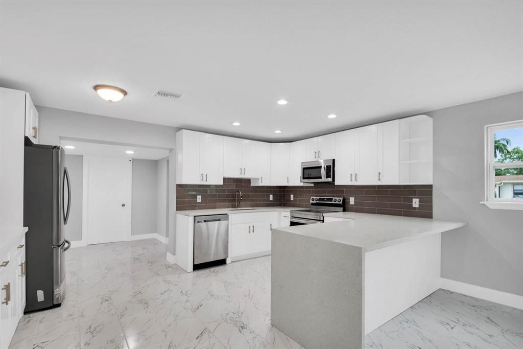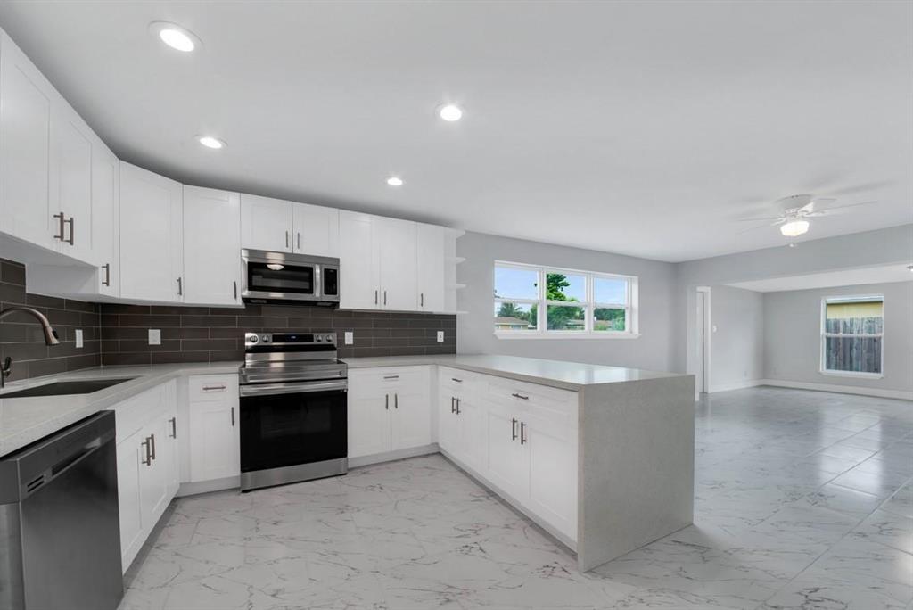Beautifully redone 4 bedroom, 2 bath home with NO HOA. BRAND NEW ROOF, A/C and FLOORING. Ideal layout for entertaining with a spacious open floorplan. The gorgeous white kitchen will inspire your inner chef with brand new stainless steel appliances, Quartz countertops, tiled backsplash, high hat lighting and a snack bar. Spacious master retreat with an en-suite bath. Impact windows, new neutral flooring throughout, new updated baths and an abundance of natural light complete this freshly painted home. Enjoy outdoor living in your large yard with an open patio and PLENTY OF ROOM FOR A POOL. Located close to shopping, dining, entertainment, major highways and airports.