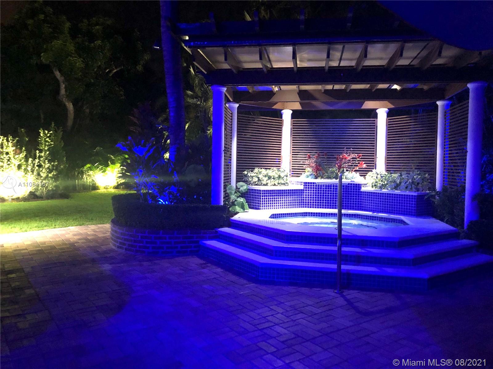 Elegant two-story Mediterranean style gated home located on a private road in prestigious Pinecrest. This home features a formal living and dining room area with fireplace, remodeled gourmet kitchen with center island, marble countertops, and high-end appliances. An adjacent breakfast and dining area is perfect for family gatherings during the early morning or dinner time. The master suite features a sitting area and fireplace. This home is outfitted with LED lighting throughout, security cameras, impact windows and doors, 2 year old roof, high-efficiency A/C, landscape lighting, outdoor speakers, and a covered terrace overlooking the heated pool and jacuzzi. The property is impeccably maintained and is lushly landscaped. Close to Parks, The Falls Mall and restaurants.