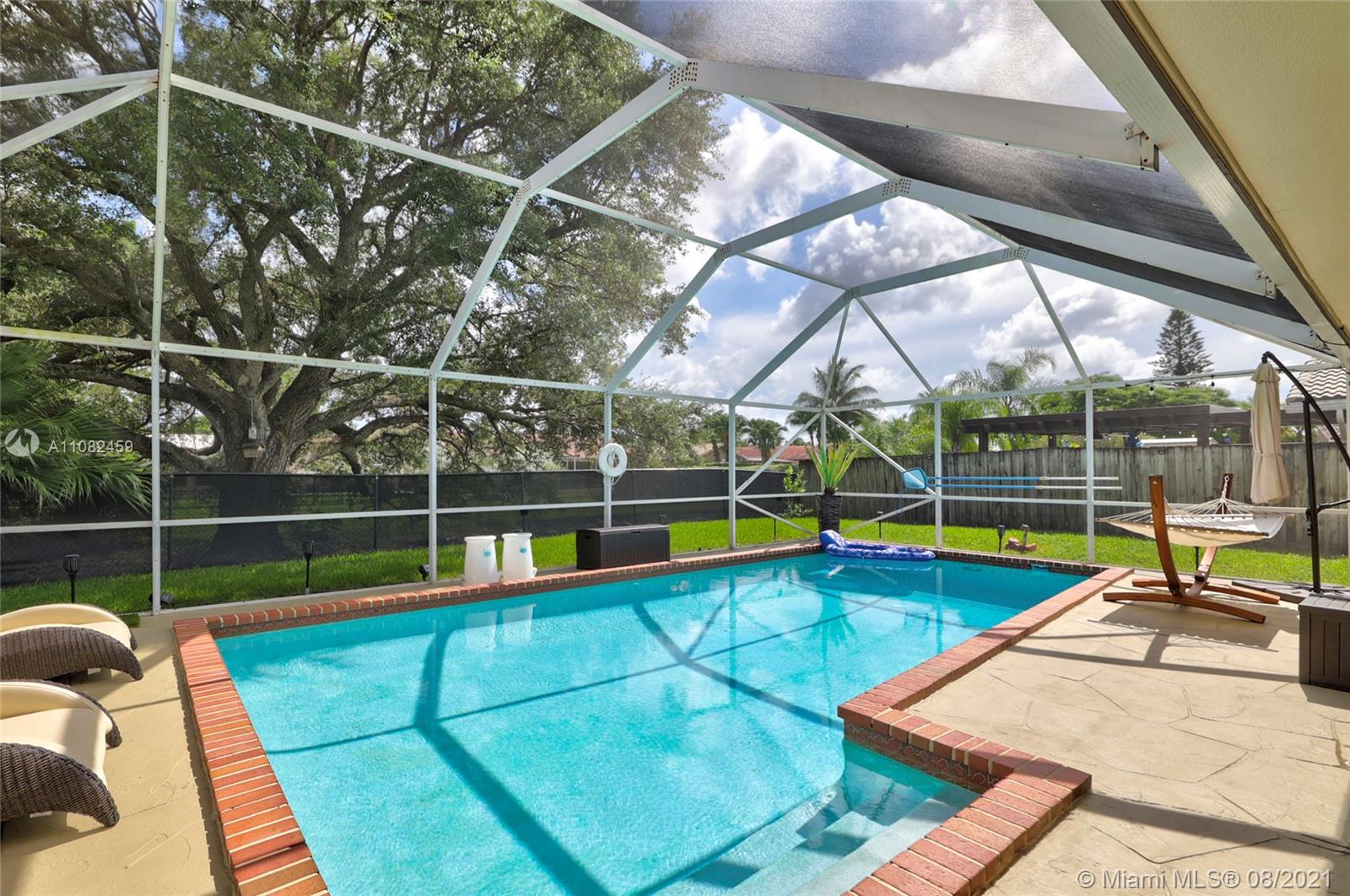 Great opportunity to own this gorgeous 4 bed/2 bath home that has been partially remodeled and well maintained. The home features a foyer entrance, vaulted ceiling, eat-in kitchen, dining room, and living room area. Updates include impact windows and doors, a new AC unit, hurricane-resistant windows, stainless steel appliances in the kitchen with a small bar fridge, a newer washer and dryer, a built-in security system with cameras, and a new saltwater pool and pool heater installed in 2020. Master suite boasts walking closet, marble & granite in bathroom. The fenced backyard, with a screened-in patio, large pool, magnificent tree, and canal views is perfectly set up for entertaining family & friends. Minutes from shopping, restaurants and great schools. No HOA.